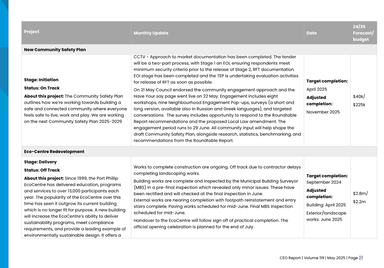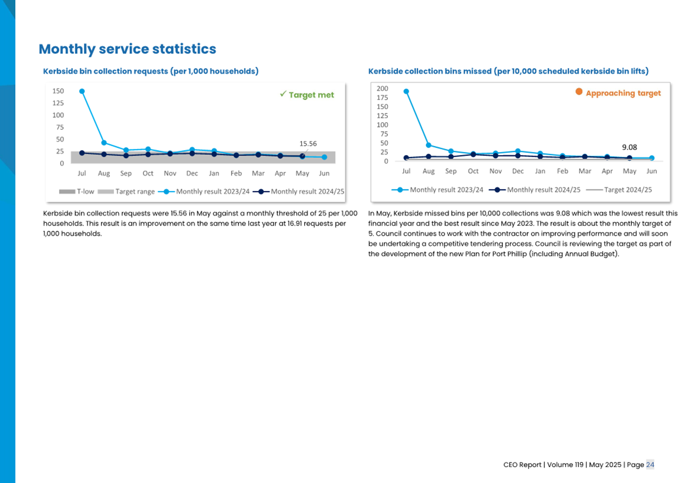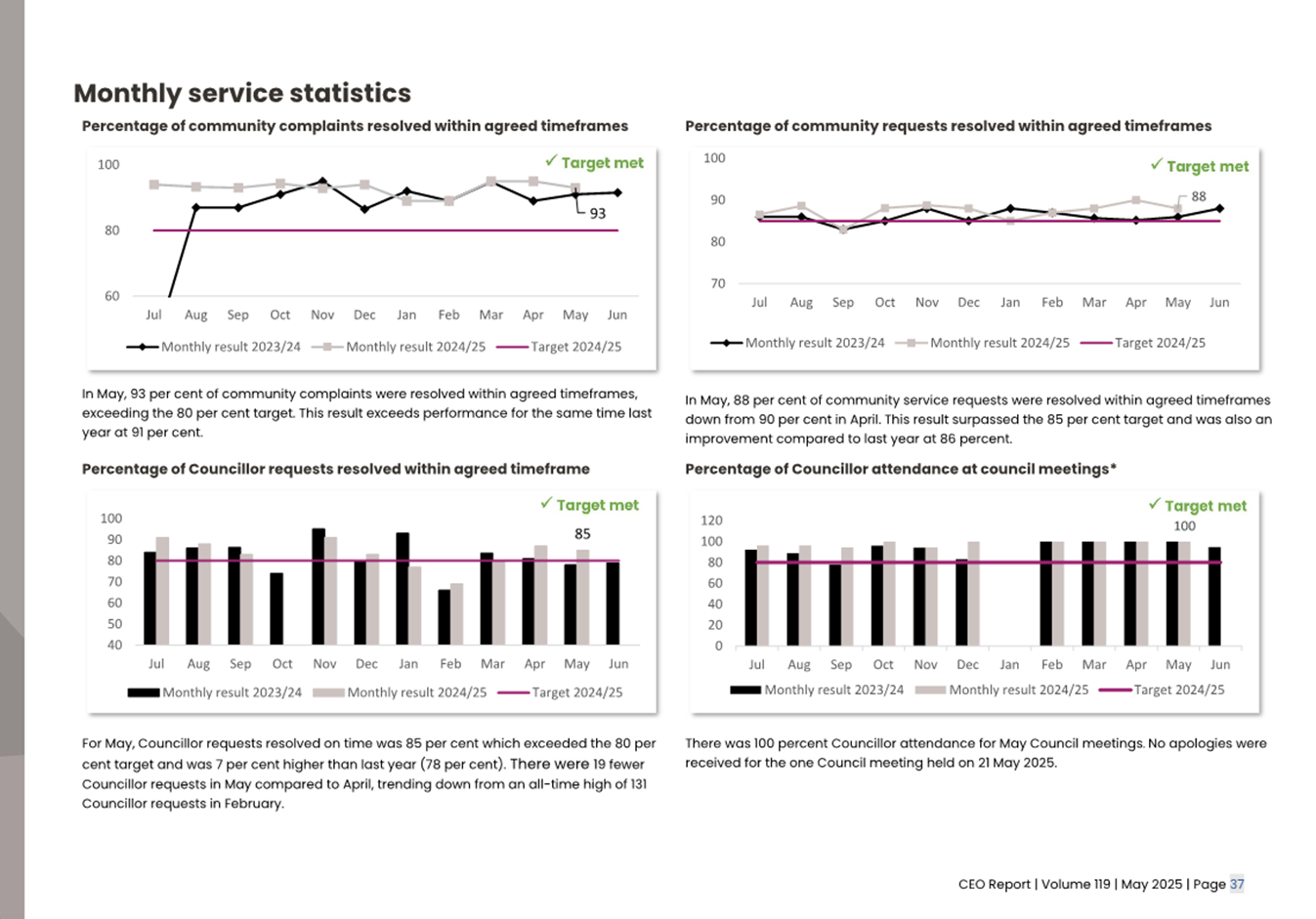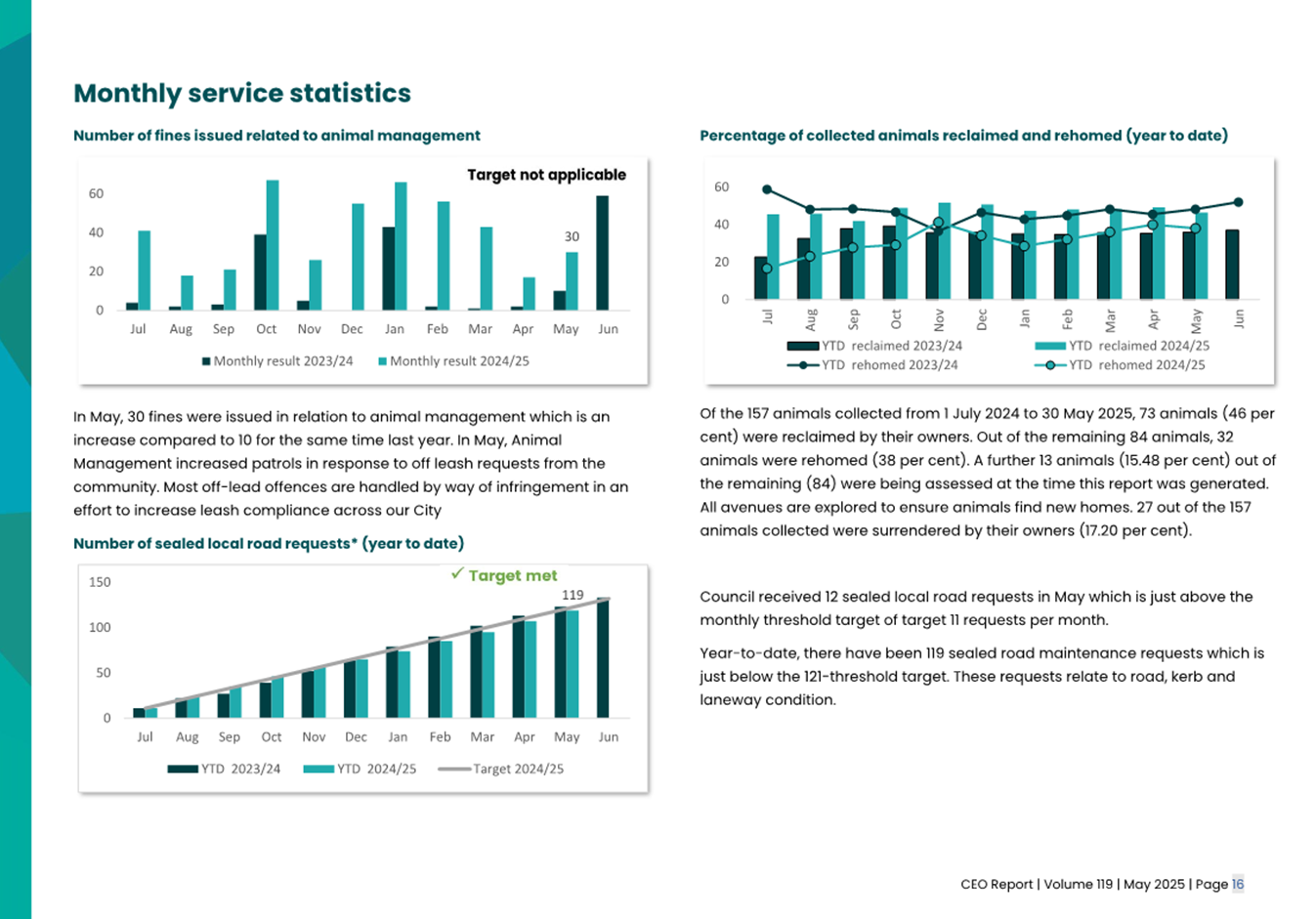 2.2 The attached CEO Report – Issue 119 (Attachment 1) focuses on Council’s performance for May 2025