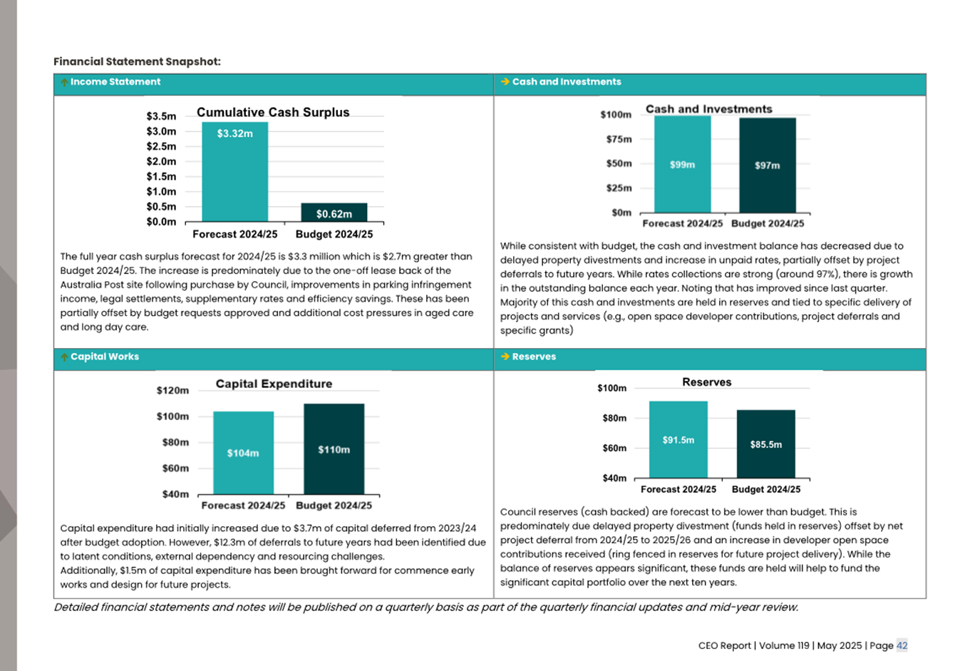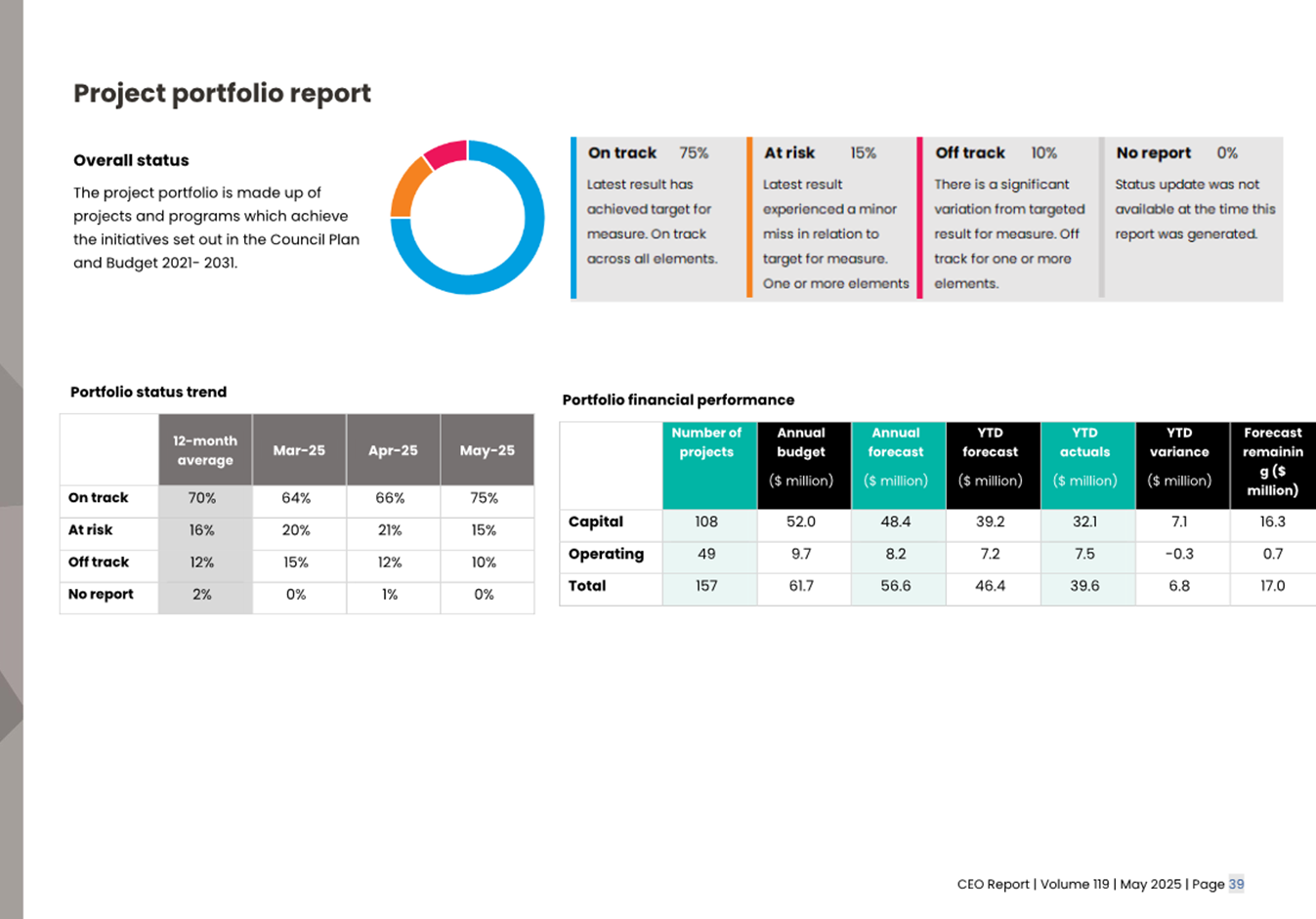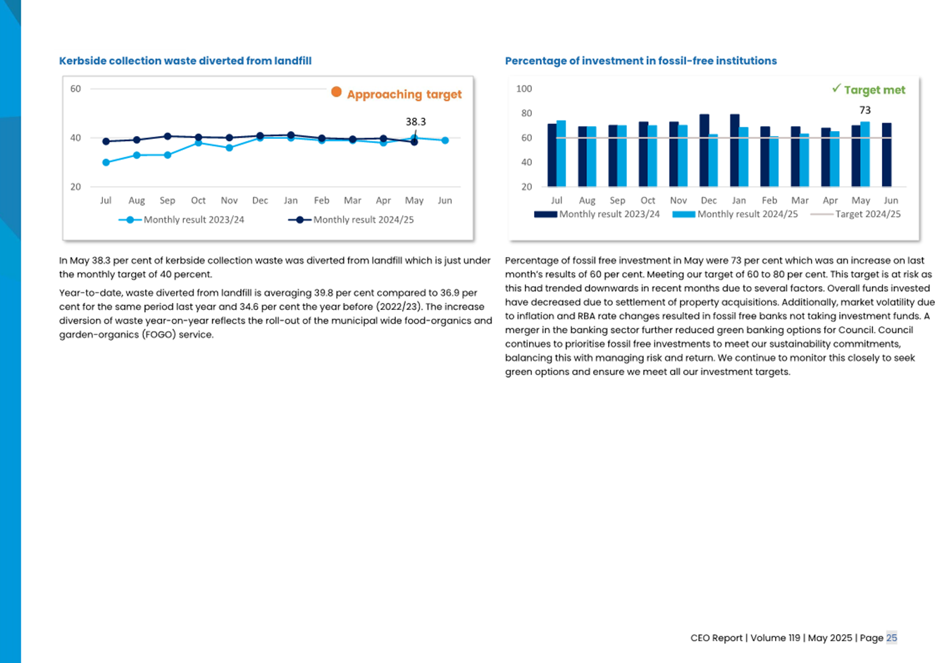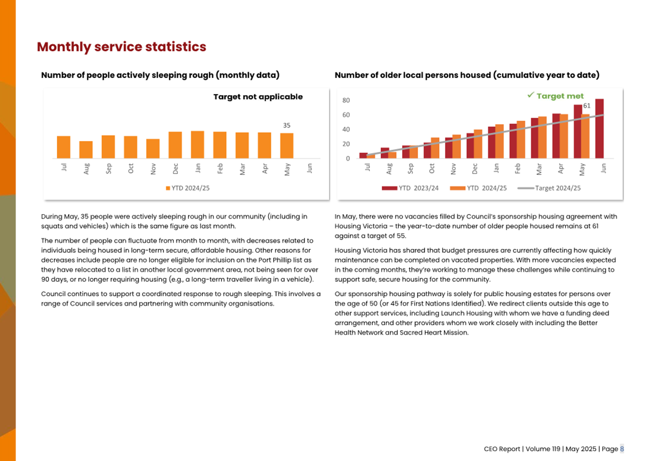 2.2 The attached CEO Report – Issue 119 (Attachment 1) focuses on Council’s performance for May 2025