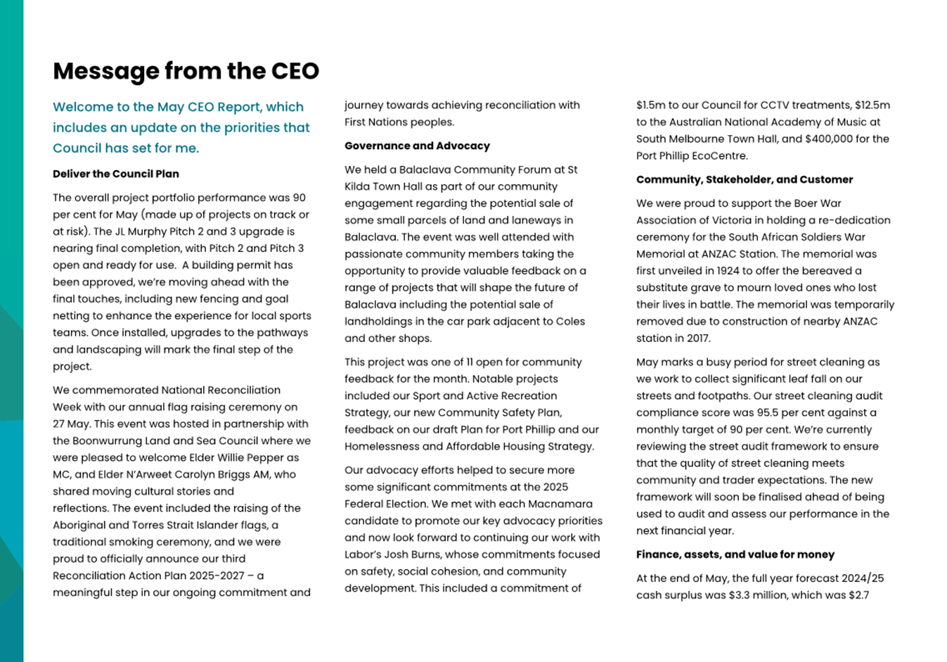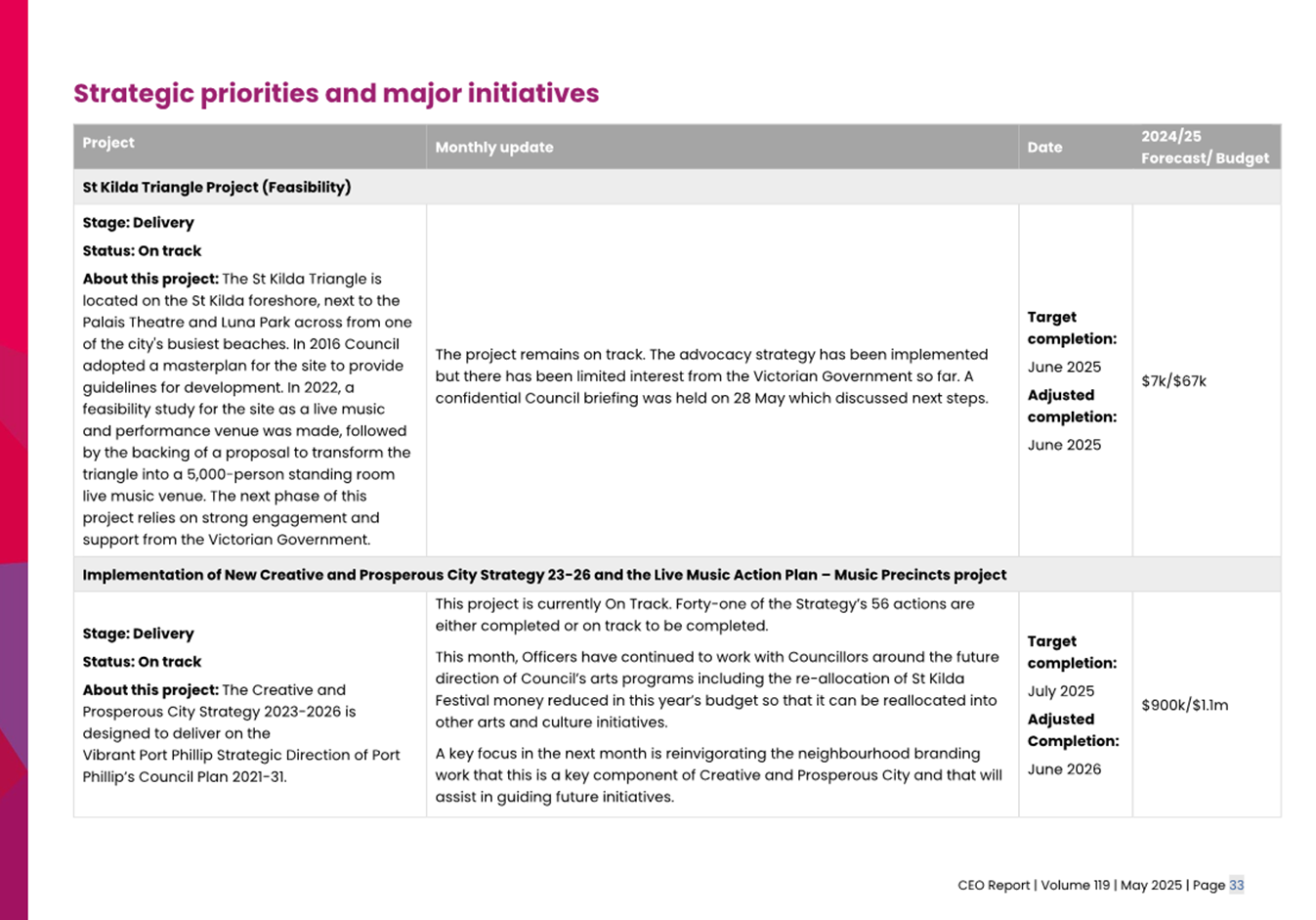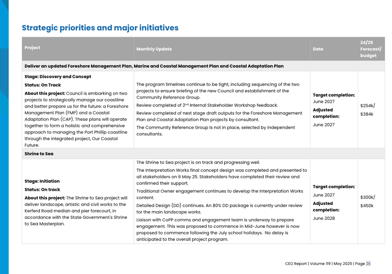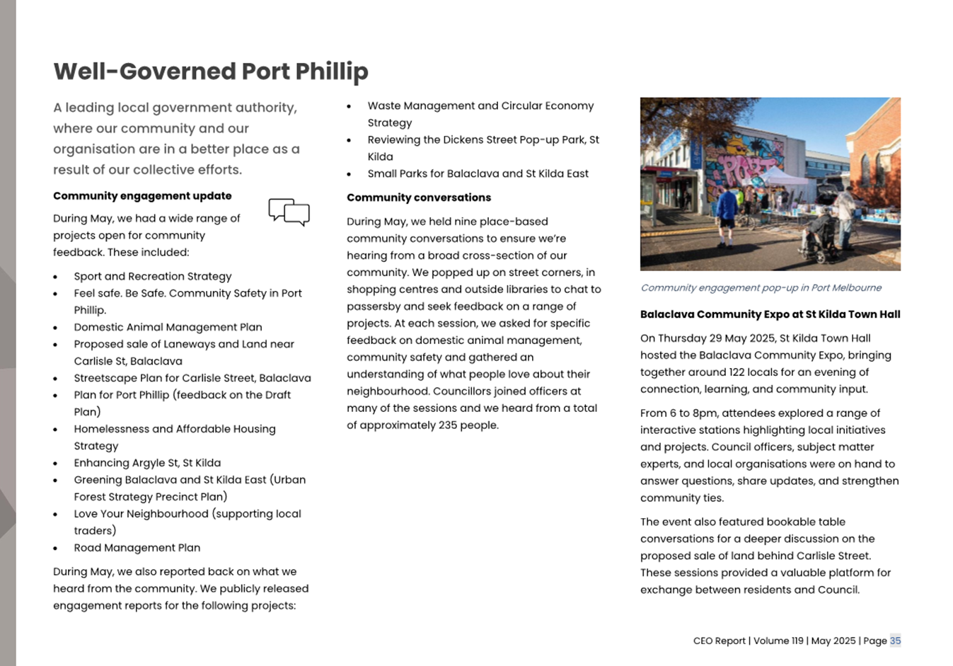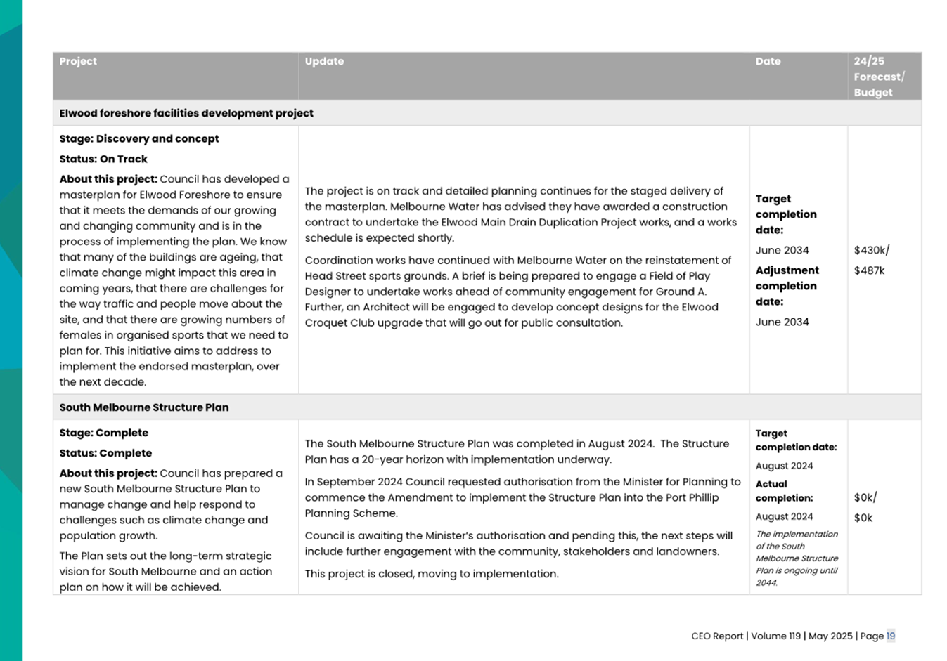 2.2 The attached CEO Report – Issue 119 (Attachment 1) focuses on Council’s performance for May 2025