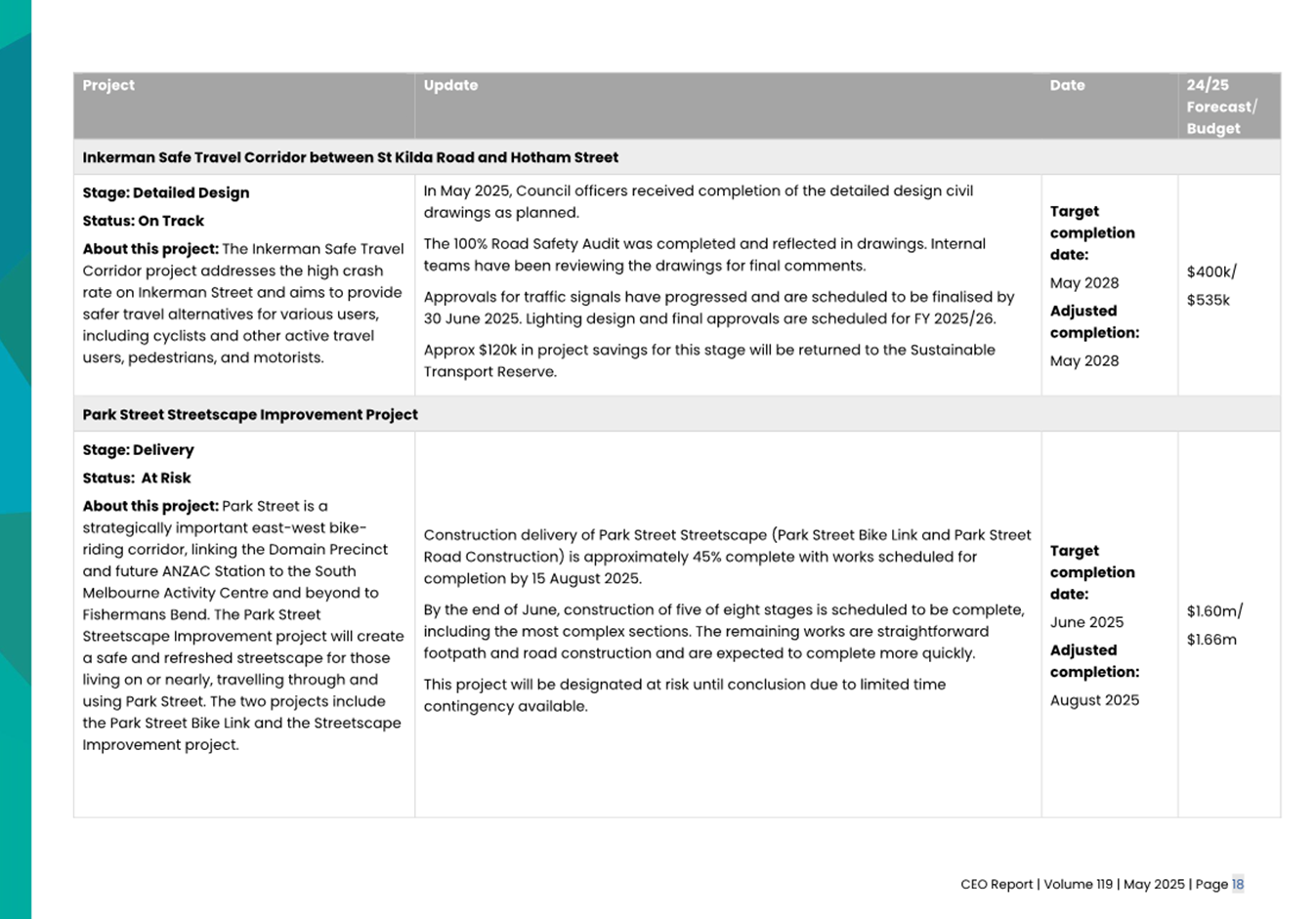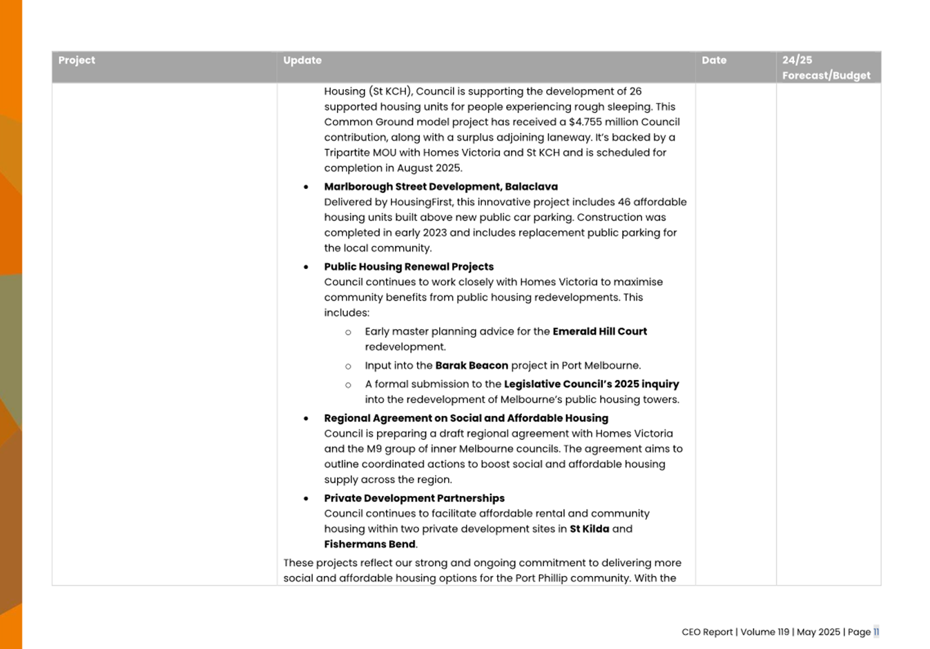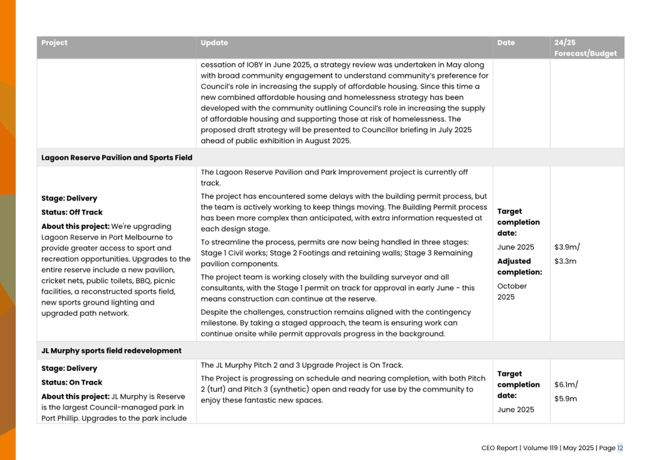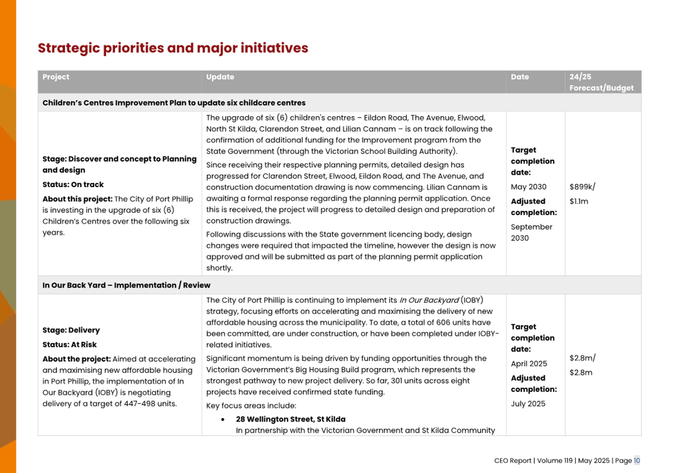 2.2 The attached CEO Report – Issue 119 (Attachment 1) focuses on Council’s performance for May 2025
