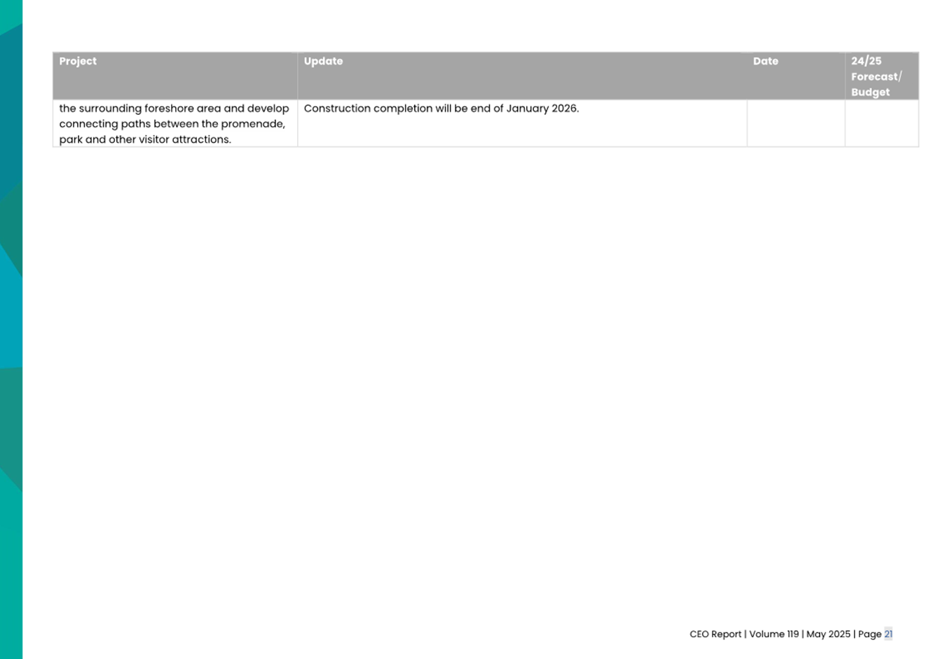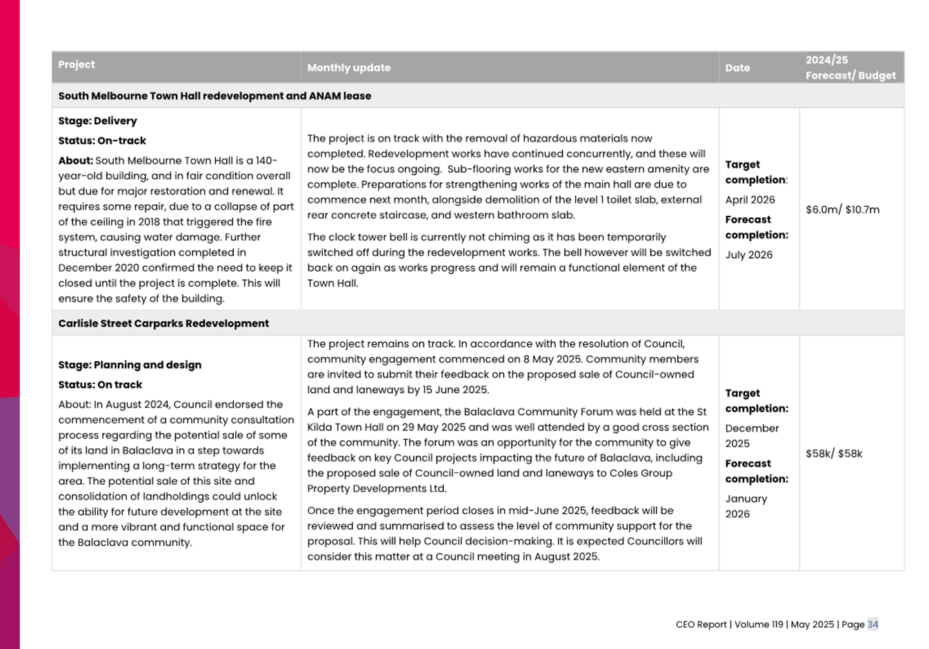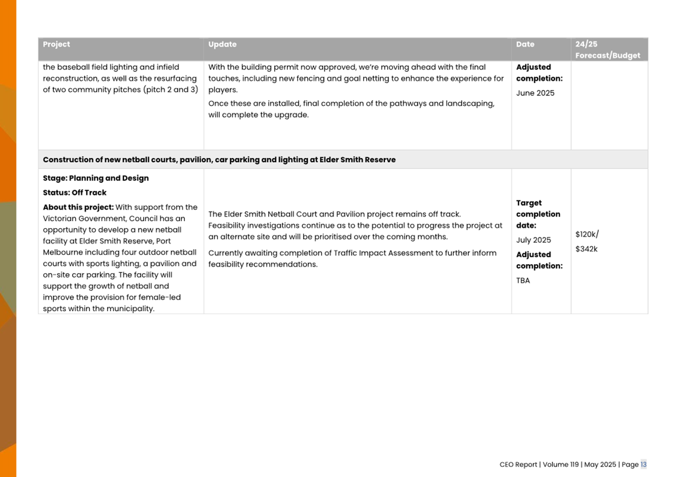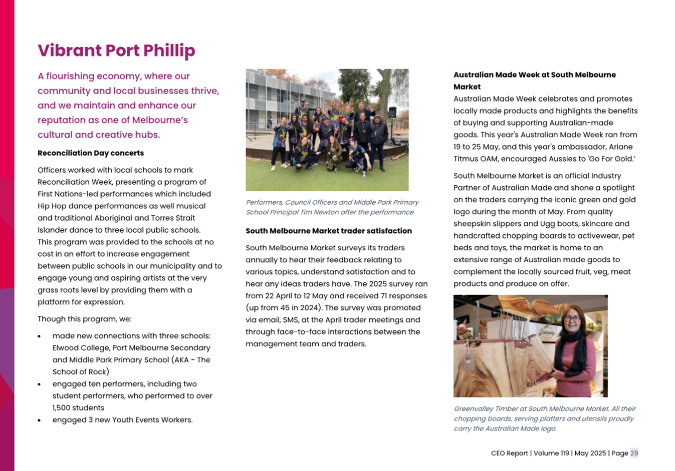 2.2 The attached CEO Report – Issue 119 (Attachment 1) focuses on Council’s performance for May 2025