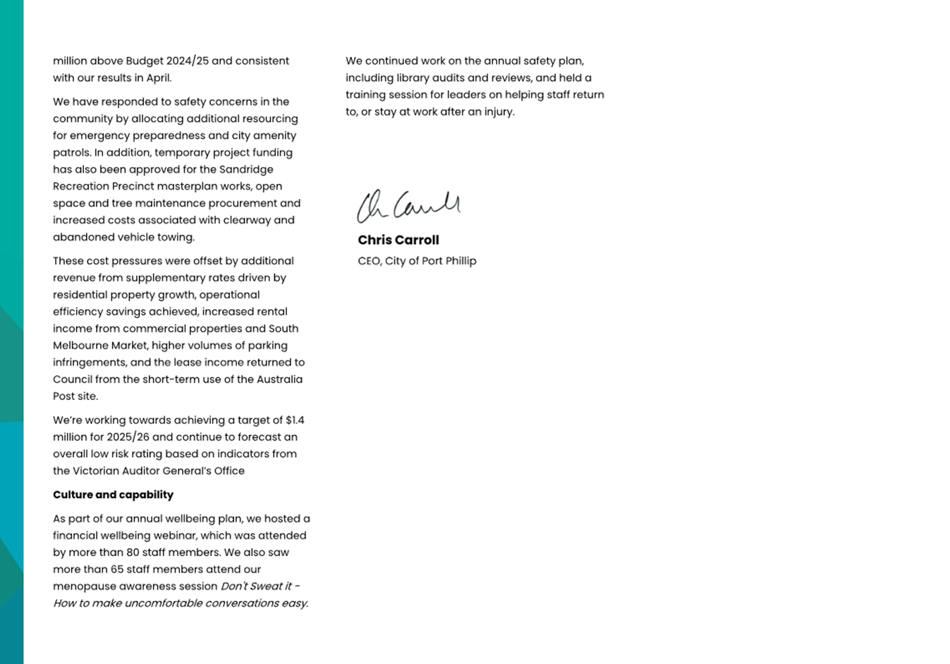2.1 In March 2014, the City of Port Phillip introduced a program of more regular performance reporting through the CEO Report.