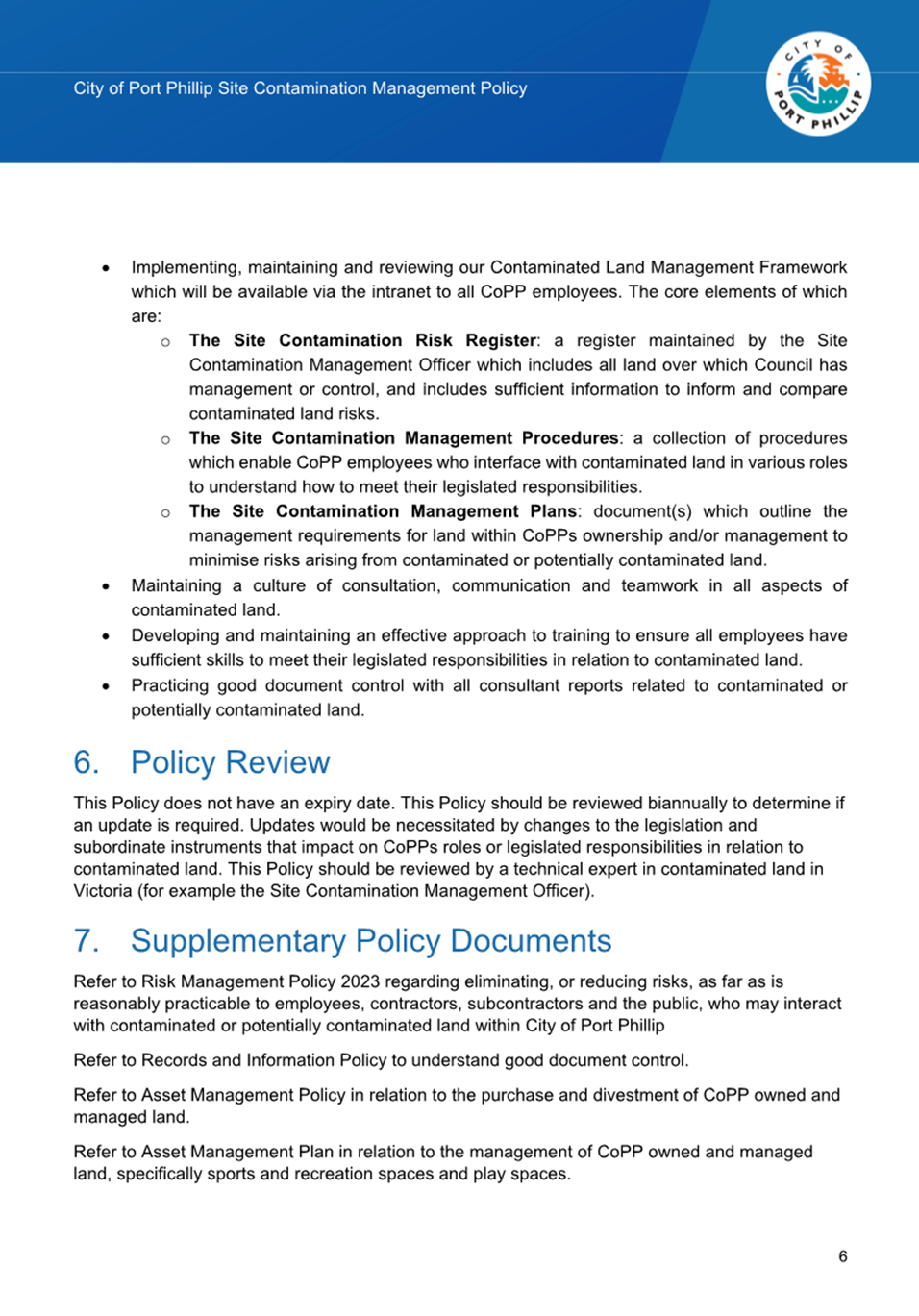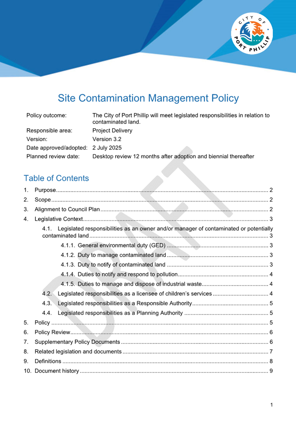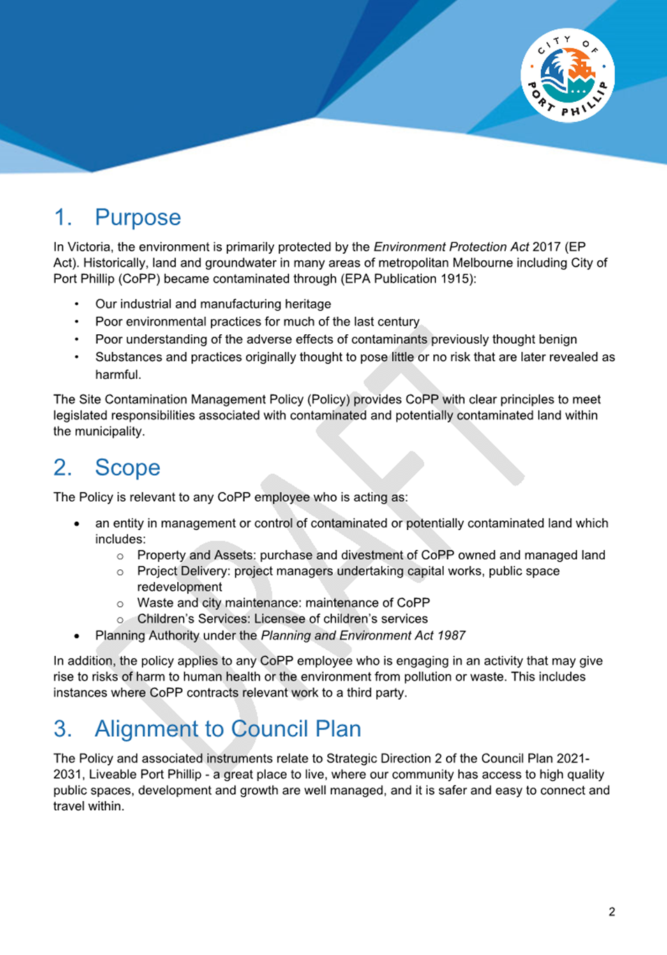 2.1 The Site Contamination Management Policy (the “Policy”) 2020 is due to expire in July 2025. An updated 2025 Policy has been produced for formal endorsement by Council.