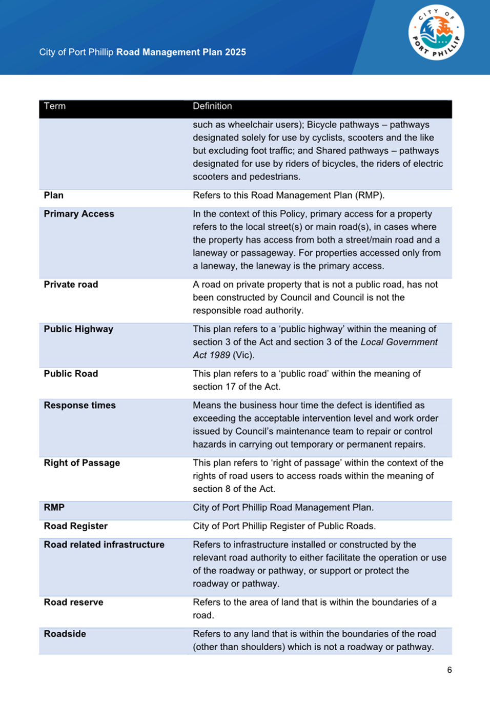 2.6 The Road is listed on City of Port Phillip’s Register of Roads being identified as UNIP01-10.
