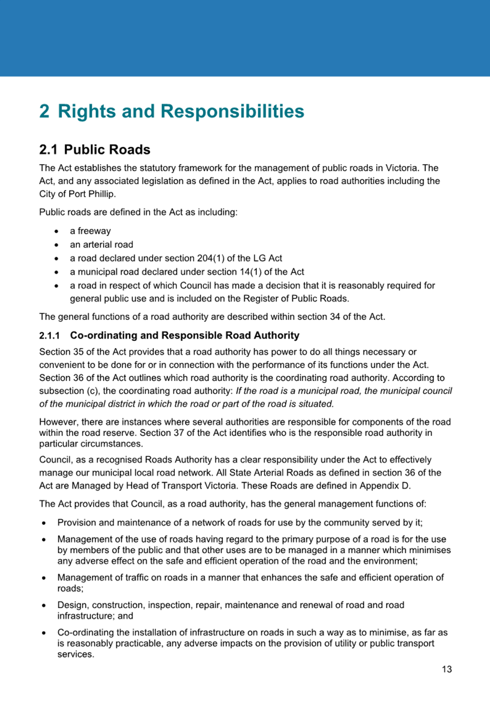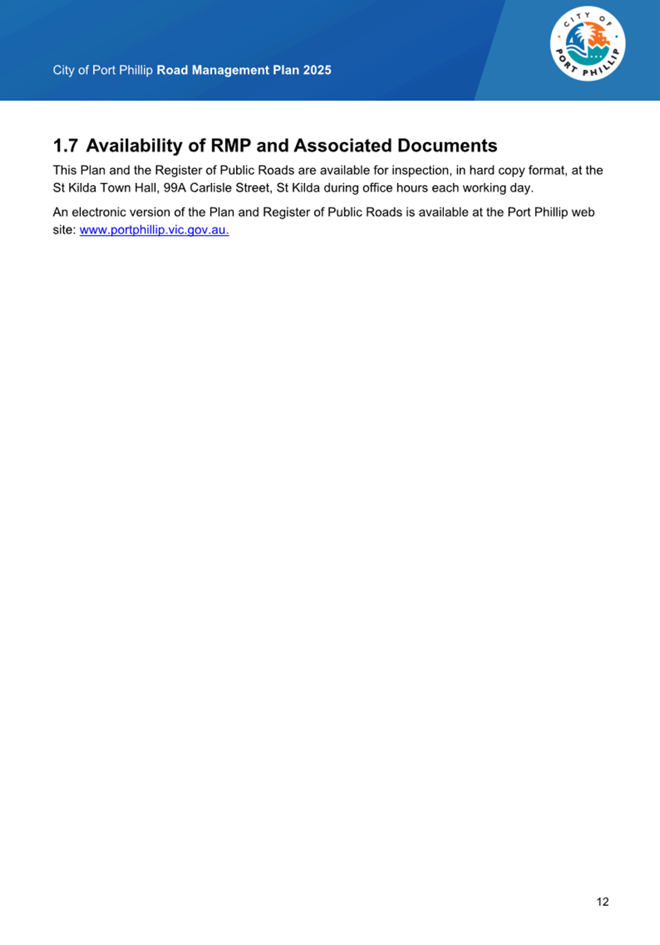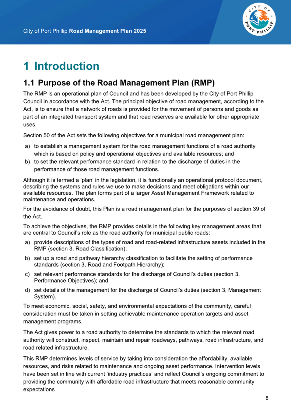 2.1 The City of Port Phillip’s Road Discontinuance and Sale of Roads Policy (Version 2.1 March 2022) sets out Council’s approach to the discontinuance and sale of roads and laneways to ensure that those roads reasonably required for public access remain open to the public and those not generally required for public access may be discontinued and the land sold.