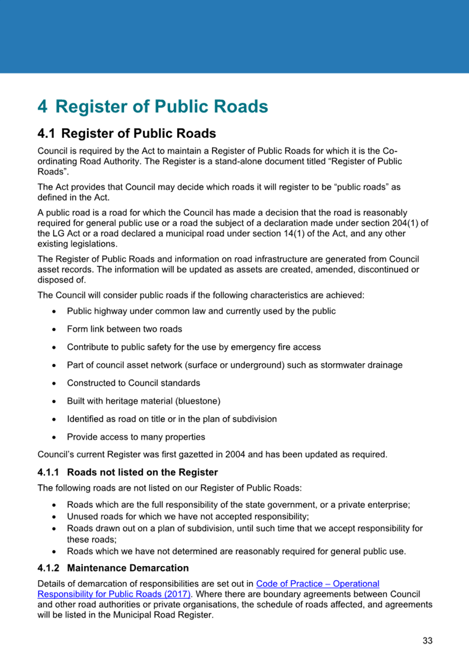6.3 Council has a Road Discontinuance and Sale of Roads Policy (2022) that enables roads that are no longer required for public access to be discontinued and sold to adjoining property owner(s).