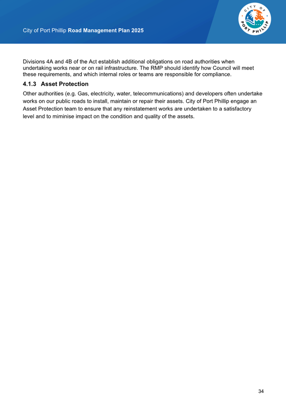 5.3 Council’s Asset Management, Real Estate Portfolio, City Development (Statutory Planning / Building), and City Planning and Sustainability Departments have advised that the City of Port Phillip has no direct assets in or above the Road and have no objection to the Proposal.