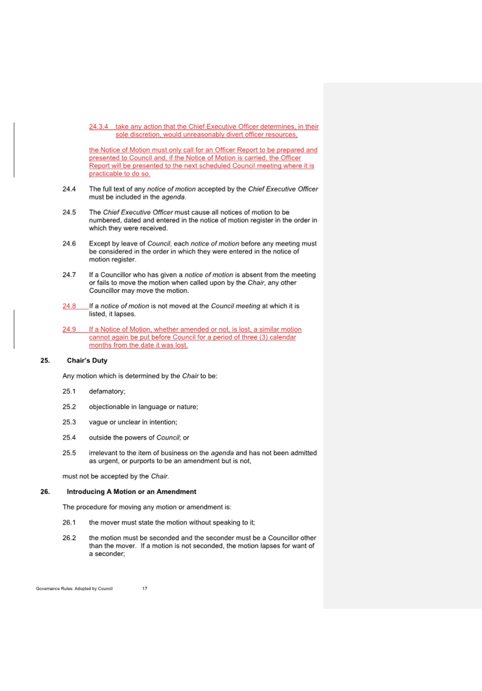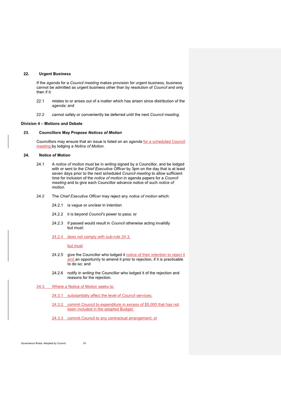 15. Notices of Motion