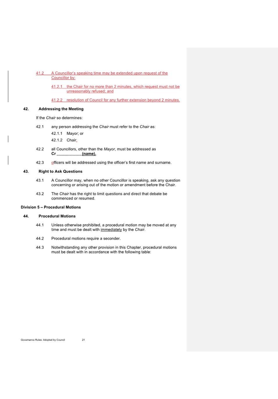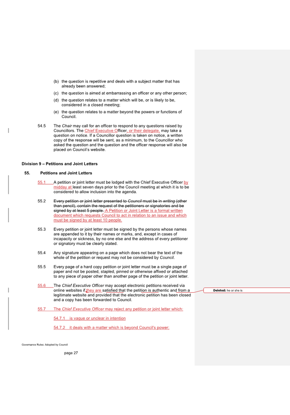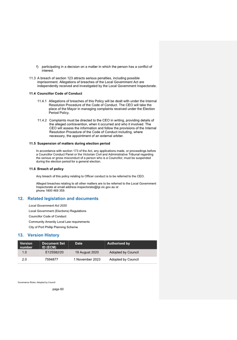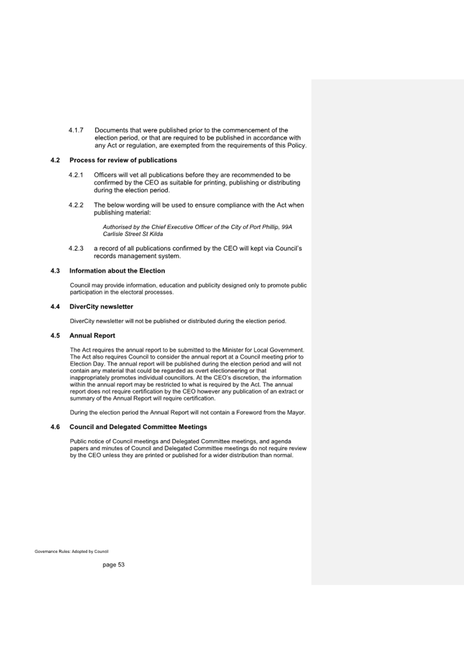 11.2.2 Notification of endorsed changes will be circulated to all council staff.