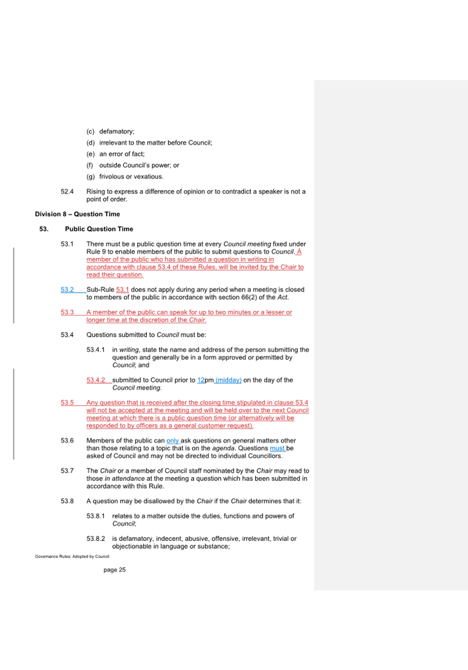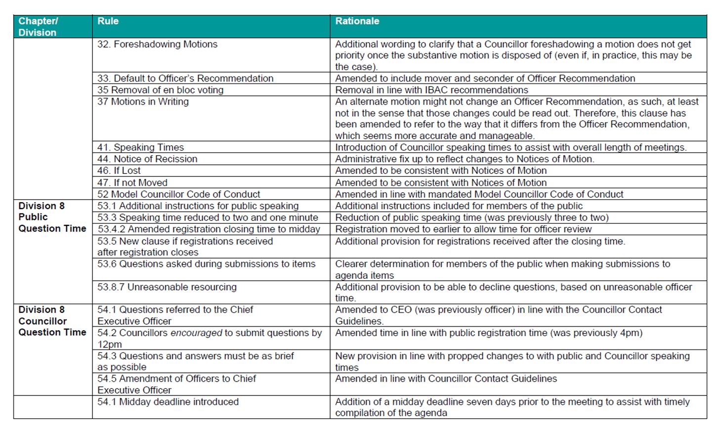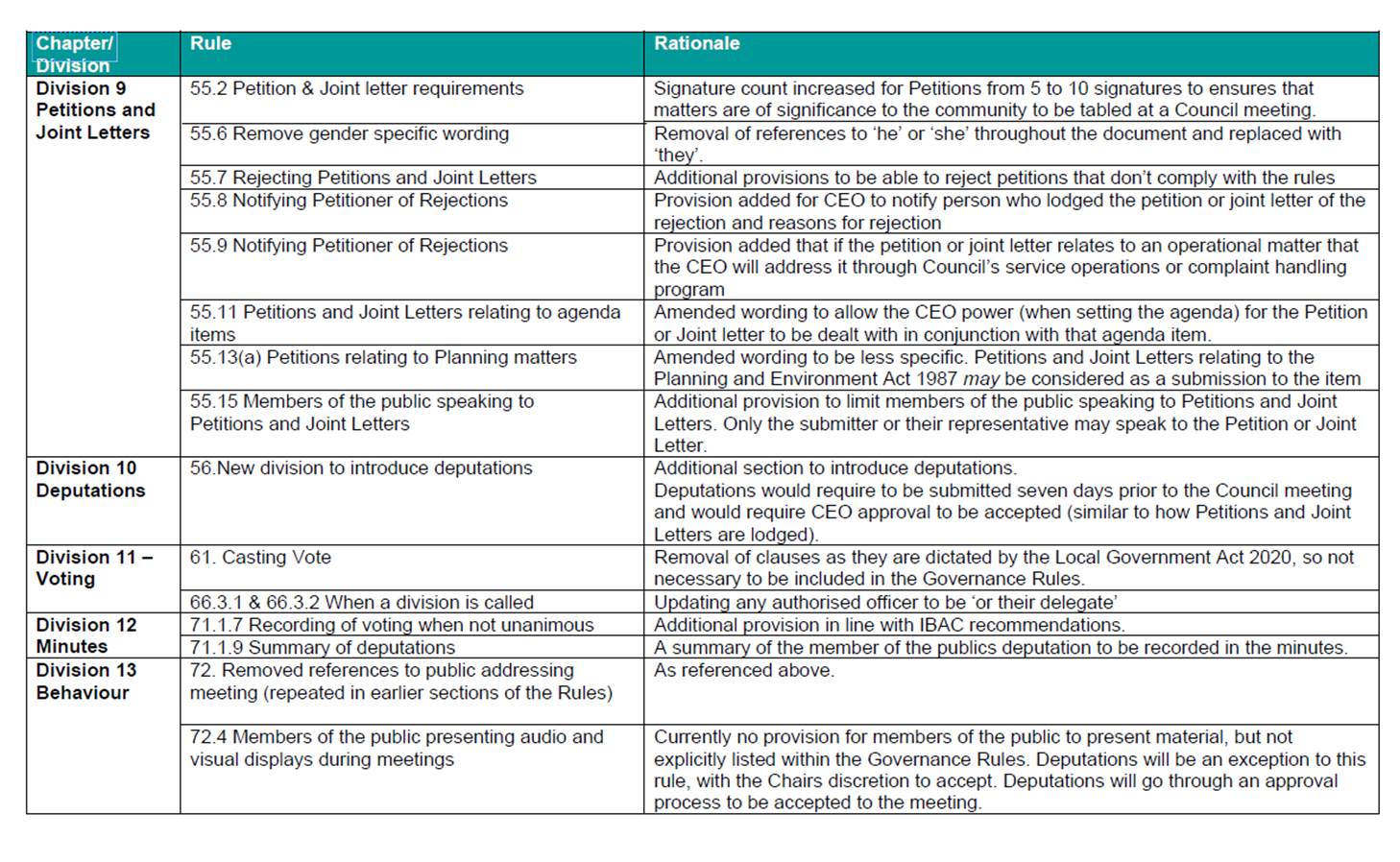 13.1 Review of Governance Rules - Release for Public Consultation.............................................................. 133