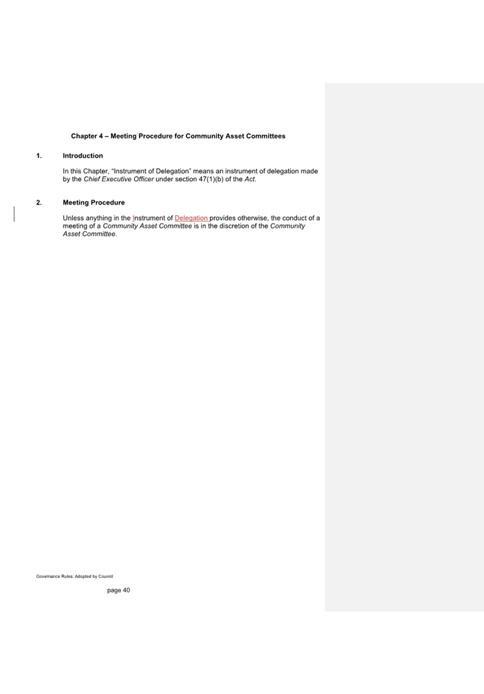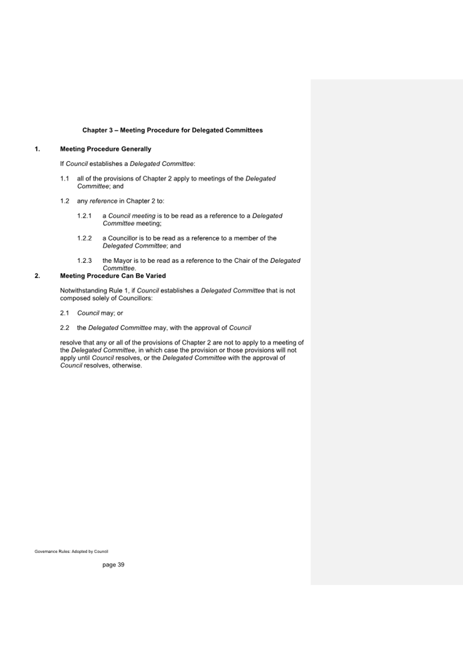 11.1.1 If approved by Council, the delegation will apply with immediate effect.