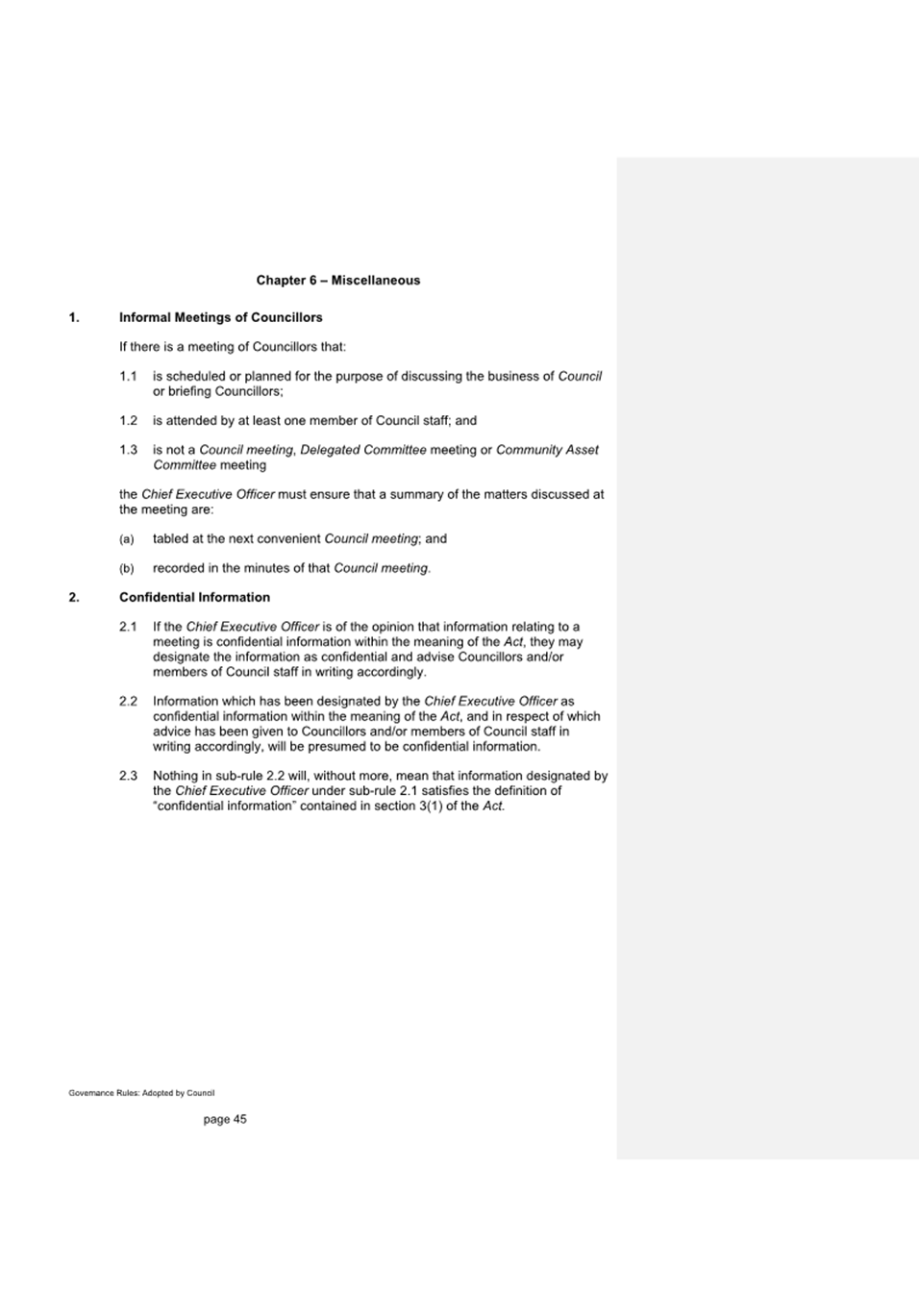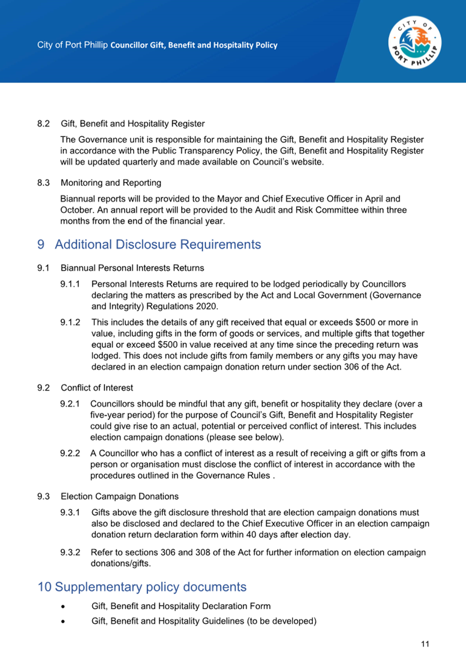 11.2.1 Under the Local Government Act 2020, and in accordance with Council’s Public Transparency Policy, a Register of Delegations must be maintained and made publicly available on Council’s website.