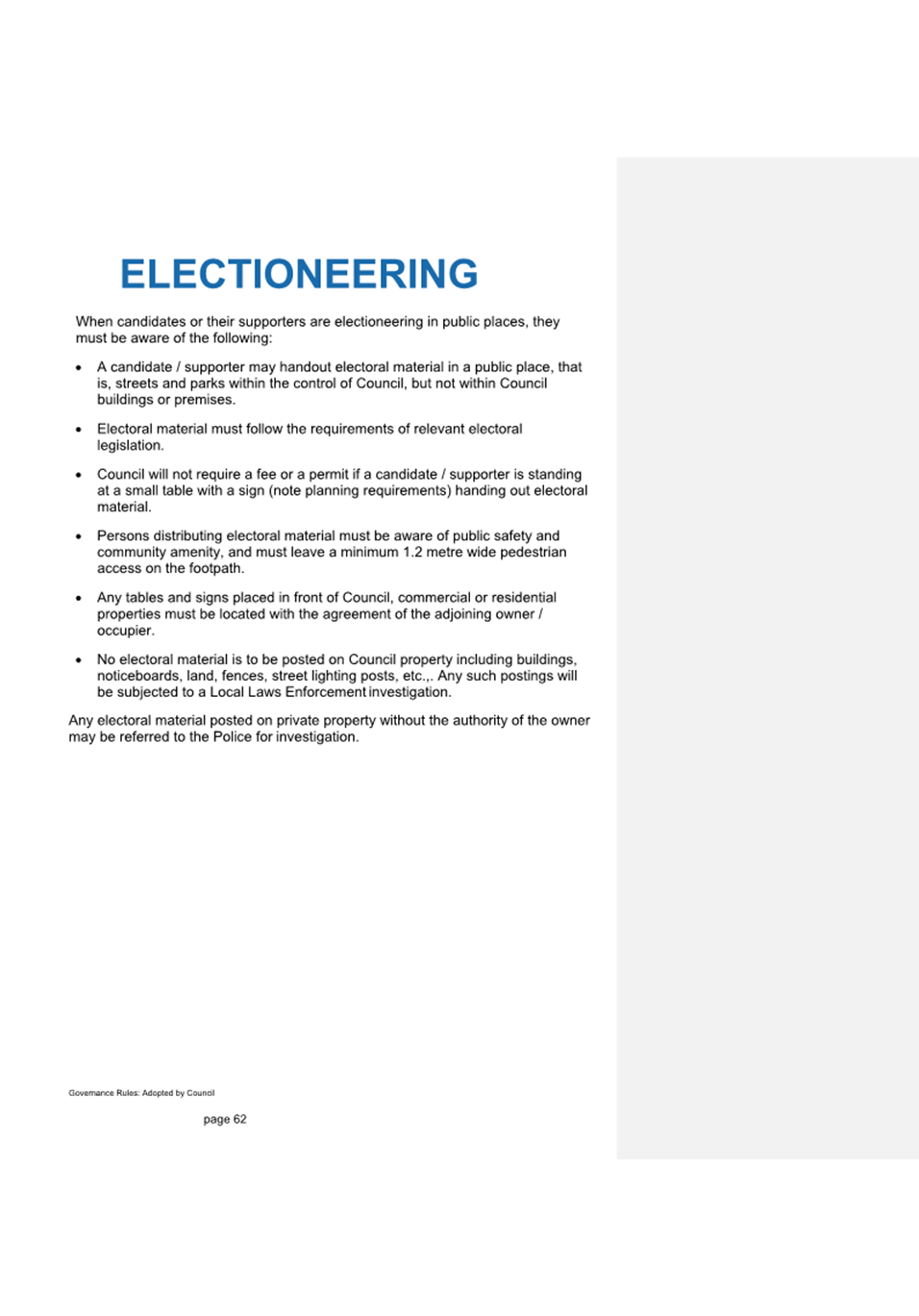 4.8 This section of the report is intended to provide Councillors with a brief overview of the legislative context within which the 2025 Policy has been updated. Section 4 of the 2025 Policy provides more information on the relevant legislated responsibilities of Council.