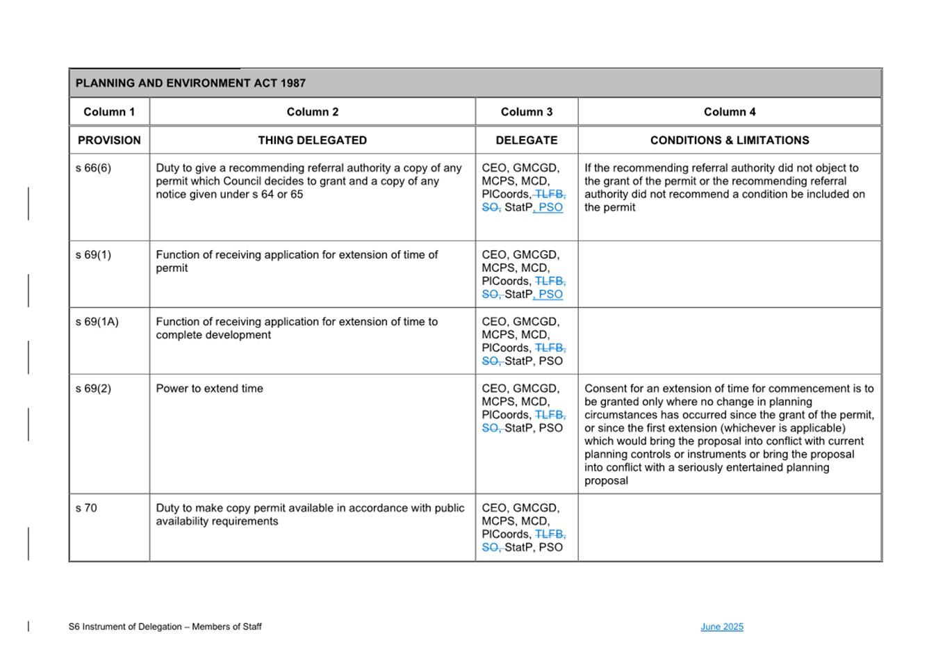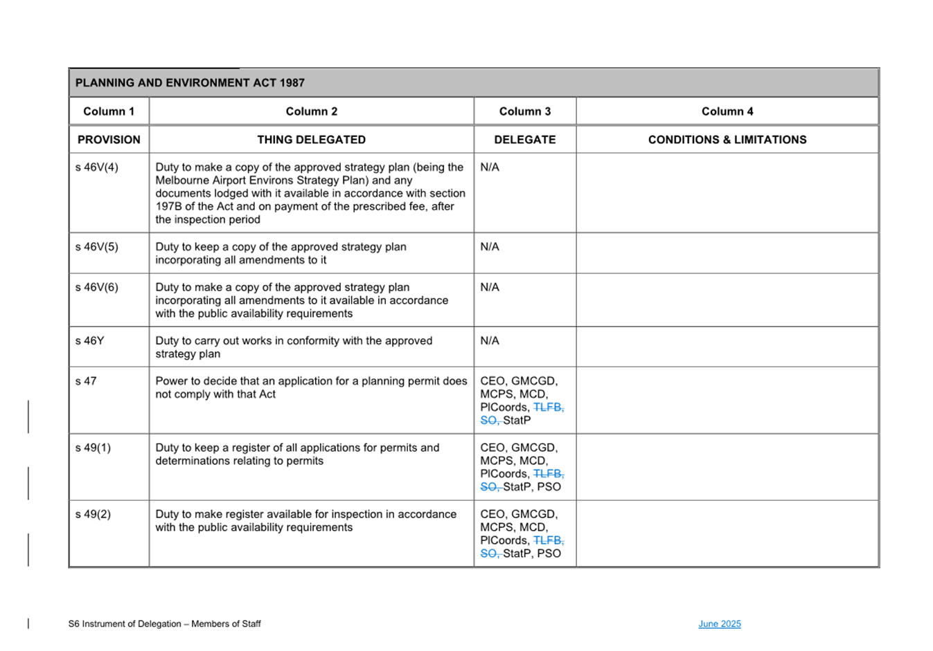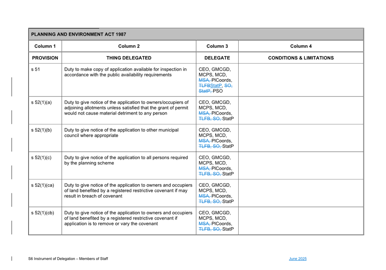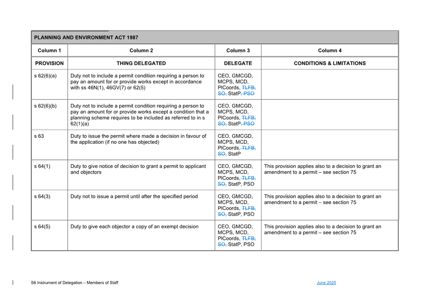 That Council: 3.1 Delegates to the members of Council staff holding, acting in or performing the duties of the offices or positions referred to in the S6 Instrument of Delegation from Council to Members of Council Staff (Attachment 1) the powers, duties and functions set out in that Instrument, subject to the conditions and limitations specified in that instrument. 3.2 The Common Seal of Council be affixed to the S6 Instrument of Delegation from Council to Members of Council Staff. 3.3 The S6 Instrument of Delegation from Council to Members of Council Staff comes into force immediately from when the Common Seal of Council is affixed to the Instrument. 3.4 Notes that on the coming into force of the S6 Instrument of Delegation, the previous S6 Instrument of Delegation from Council to members of Council staff (authorised by resolution of Council on 27 November 2024) is revoked. 3.5 Notes that the duties and functions set out in the Instrument must be performed, and the powers set out in the Instrument of Delegation must be executed, in accordance with any policies of Council that it may from time to time adopt. 3.6 Authorises the CEO, or their delegate, to make administrative changes to the document to correct any titles and typographical errors, to enable the documents to be appropriately sealed. |