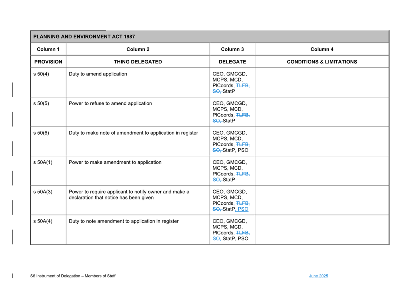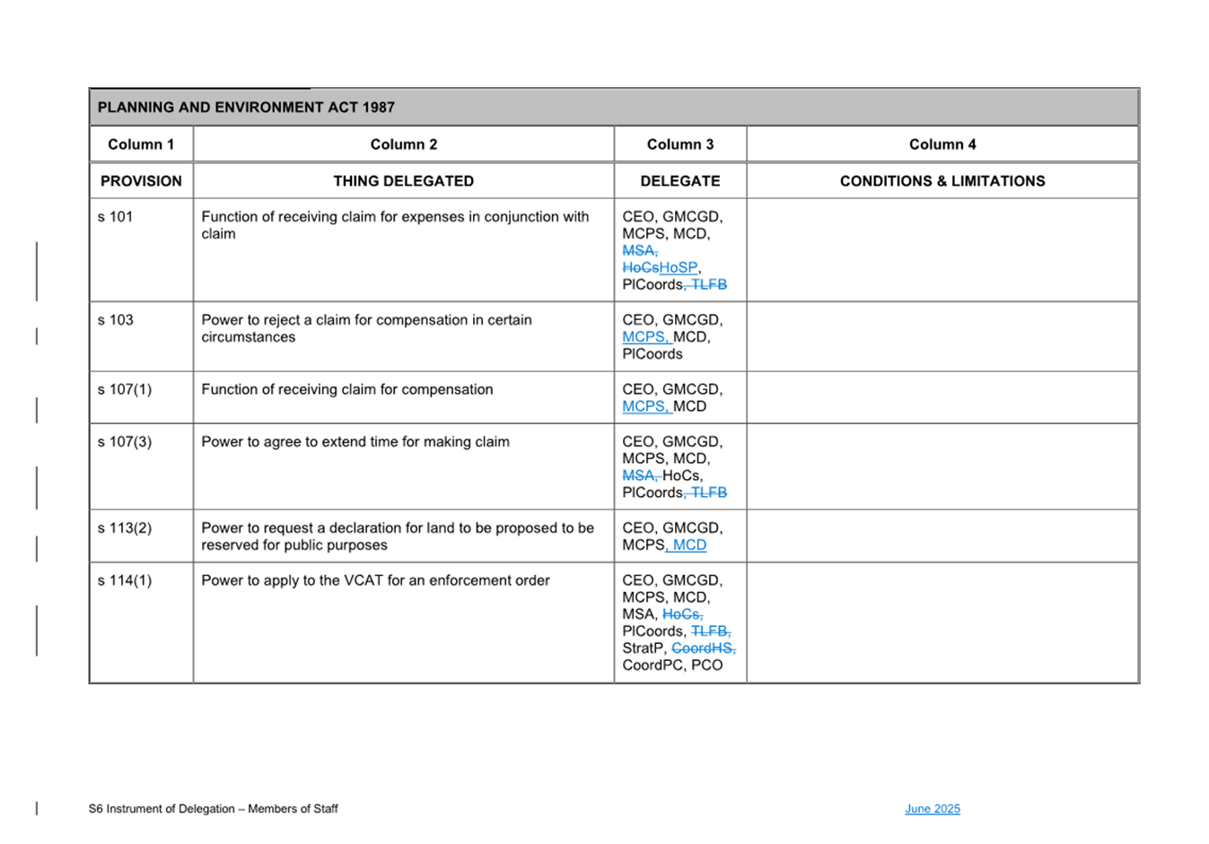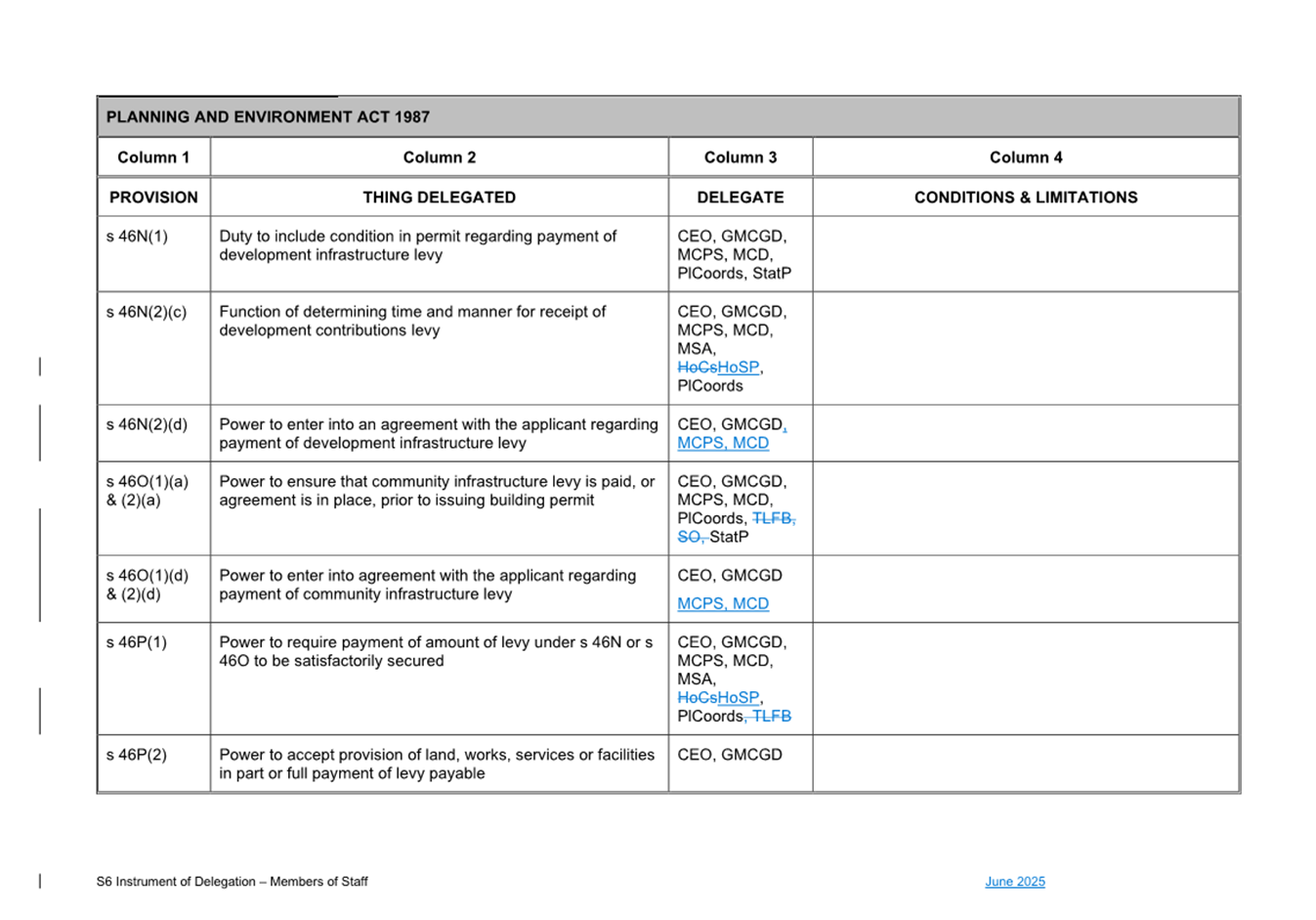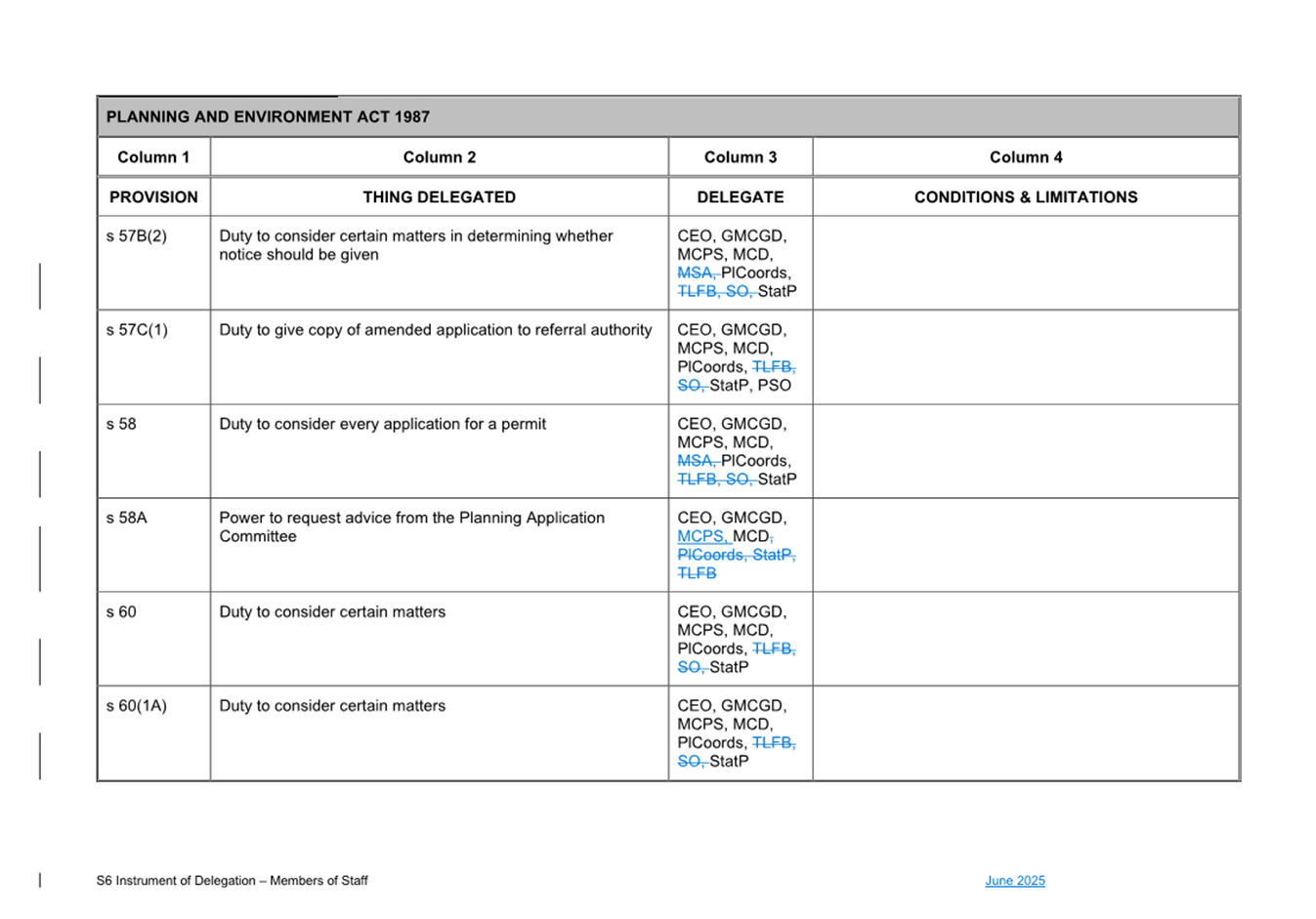 That Council: 3.1 Delegates to the members of Council staff holding, acting in or performing the duties of the offices or positions referred to in the S6 Instrument of Delegation from Council to Members of Council Staff (Attachment 1) the powers, duties and functions set out in that Instrument, subject to the conditions and limitations specified in that instrument. 3.2 The Common Seal of Council be affixed to the S6 Instrument of Delegation from Council to Members of Council Staff. 3.3 The S6 Instrument of Delegation from Council to Members of Council Staff comes into force immediately from when the Common Seal of Council is affixed to the Instrument. 3.4 Notes that on the coming into force of the S6 Instrument of Delegation, the previous S6 Instrument of Delegation from Council to members of Council staff (authorised by resolution of Council on 27 November 2024) is revoked. 3.5 Notes that the duties and functions set out in the Instrument must be performed, and the powers set out in the Instrument of Delegation must be executed, in accordance with any policies of Council that it may from time to time adopt. 3.6 Authorises the CEO, or their delegate, to make administrative changes to the document to correct any titles and typographical errors, to enable the documents to be appropriately sealed. |