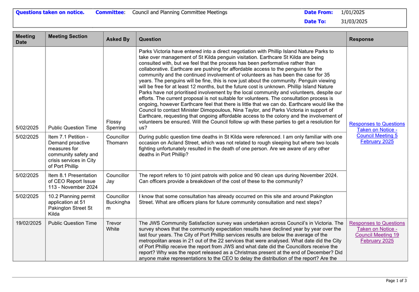 Public Question Time and Submissions Provision is made at the beginning of the meeting for general question time from members of the public. All contributions from the public will be heard at the start of the meeting during the agenda item 'Public Questions and Submissions.' Members of the public have the option to either participate in person or join the meeting virtually via Teams to ask their questions live during the meeting. If you would like to address the Council and /or ask a question on any of the items being discussed, please submit a ‘Request to Speak form’ by 4pm on the day of the meeting via Council’s website: Request to speak at a Council meeting - City of Port Phillip |