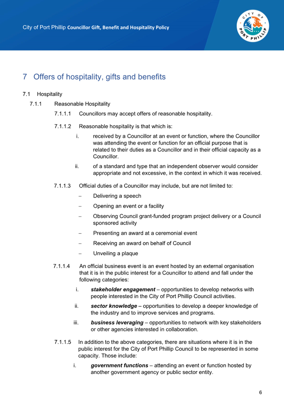 5.1.1 City of Port Phillip;