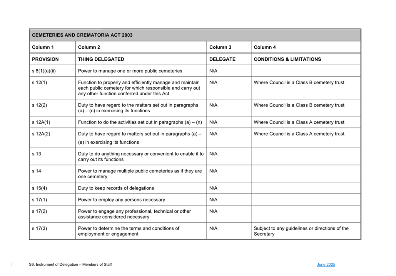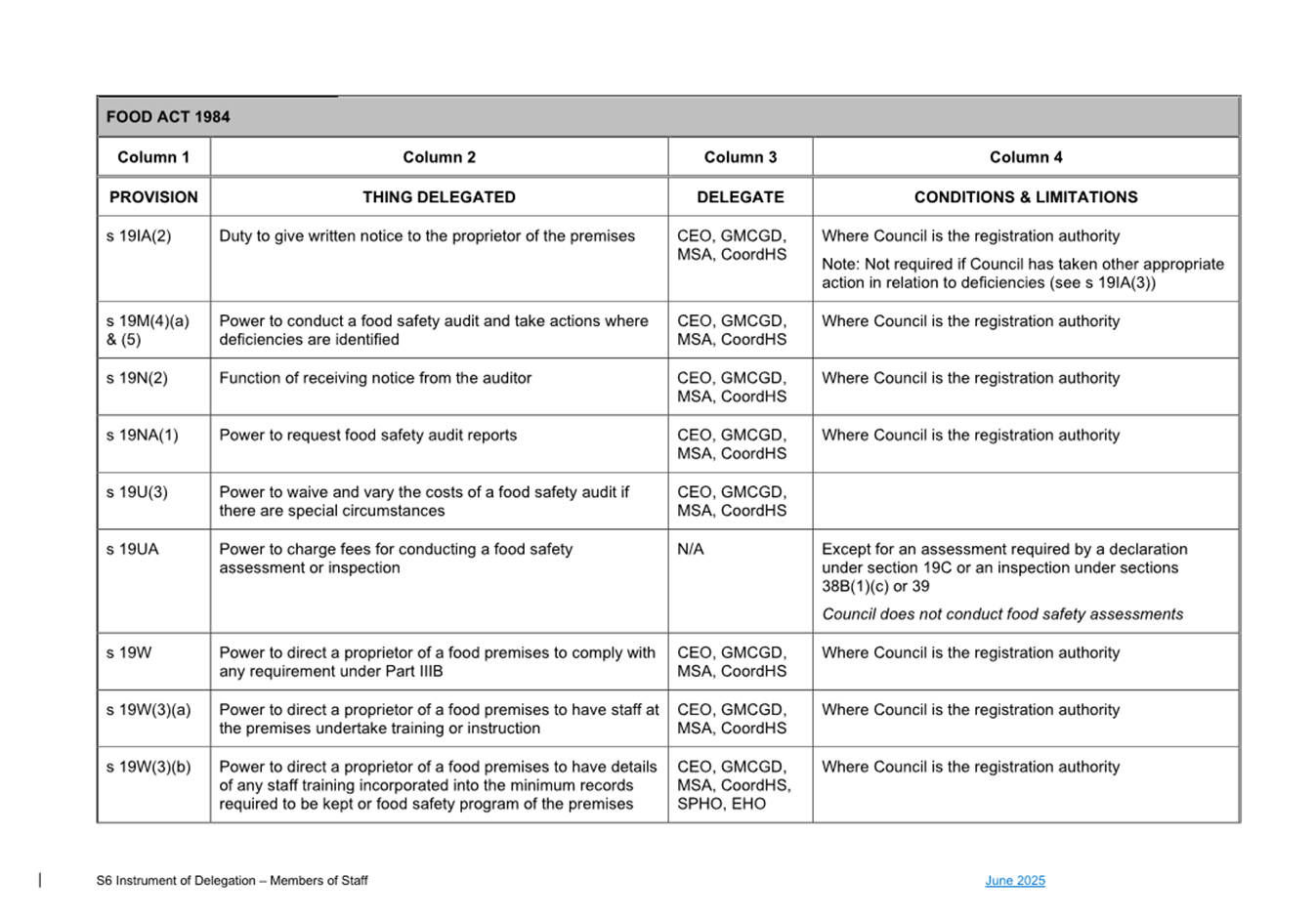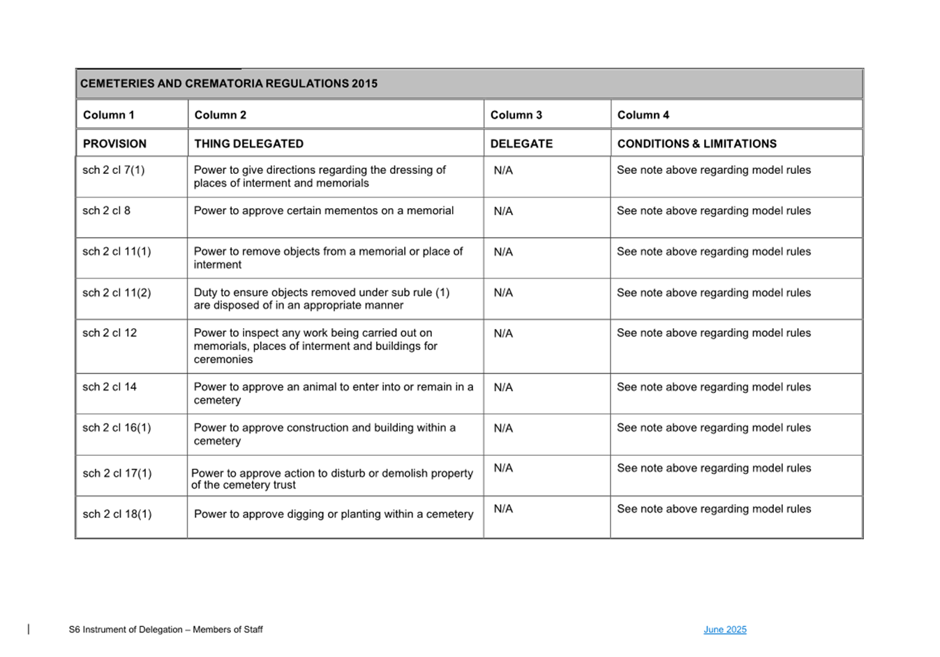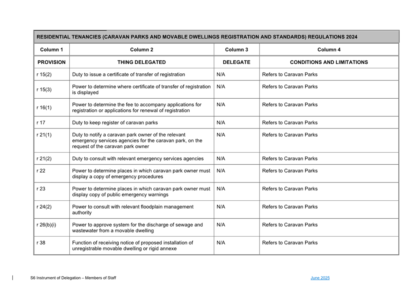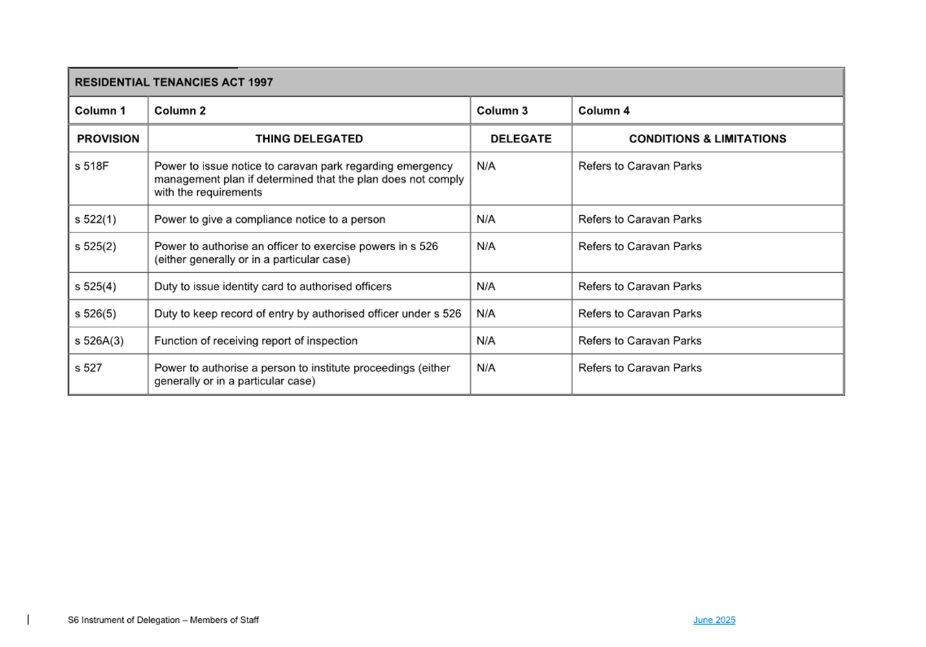 1. S6 Instrument of Delegation Council to Staff - June