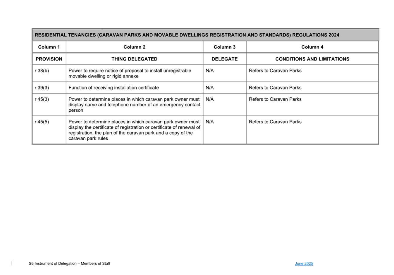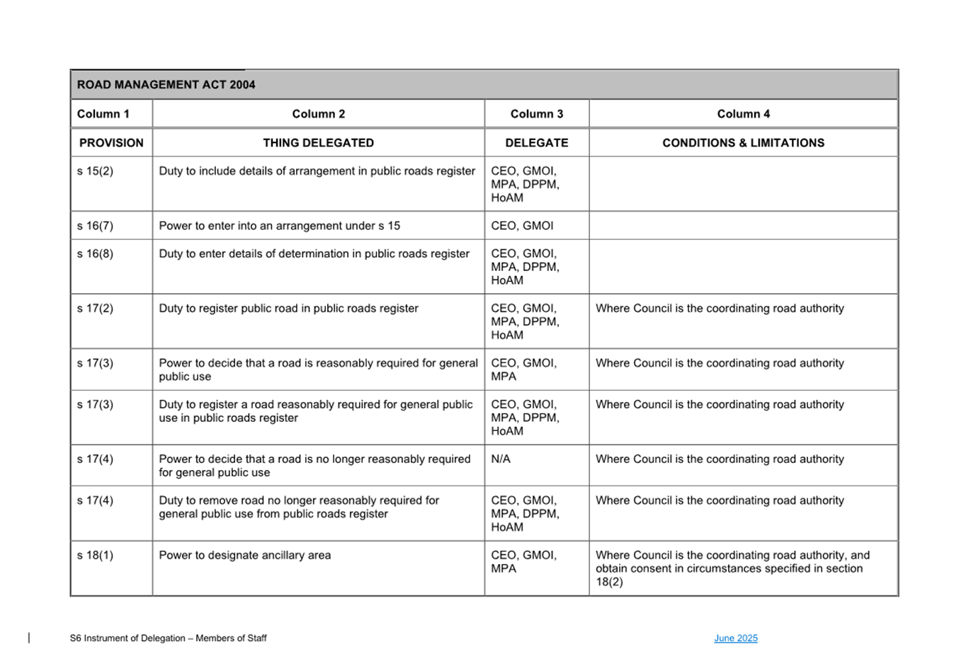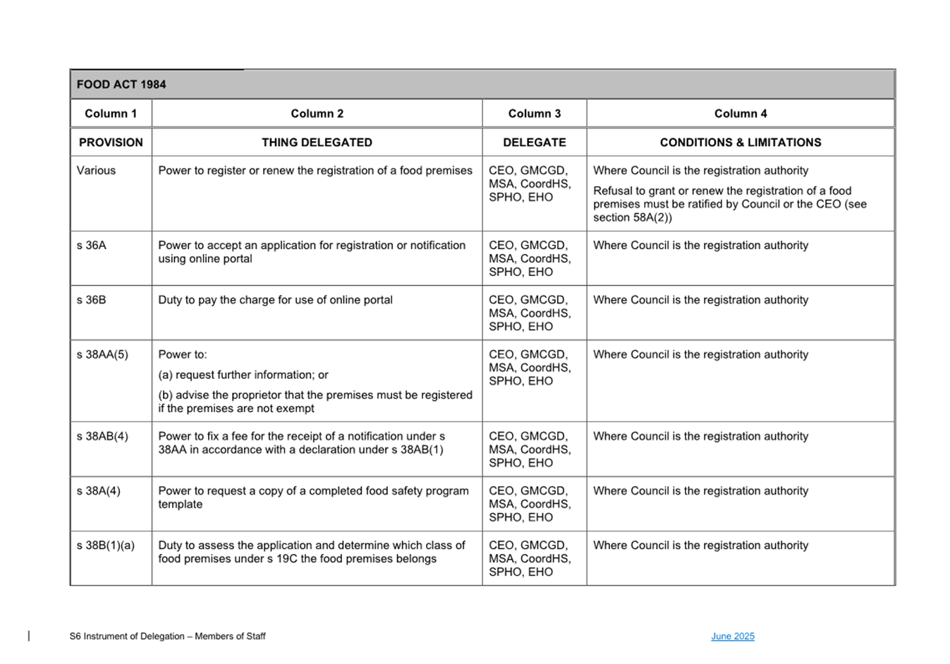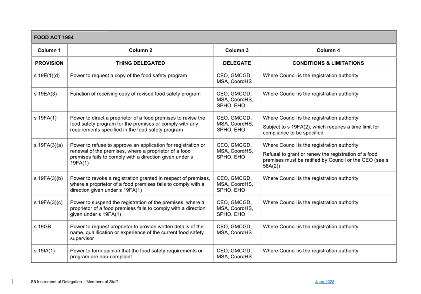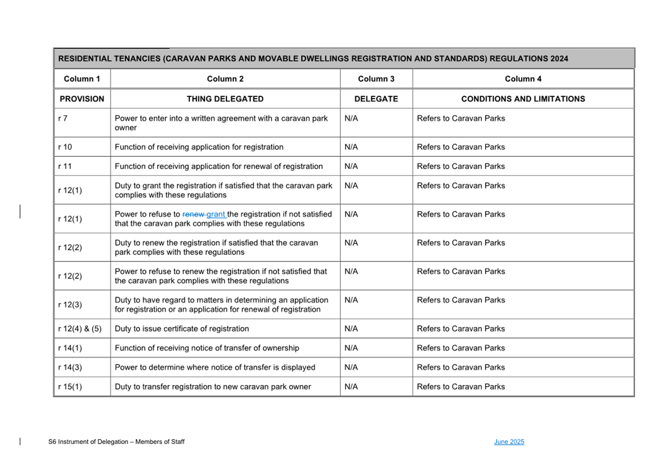 1. S6 Instrument of Delegation Council to Staff - June
