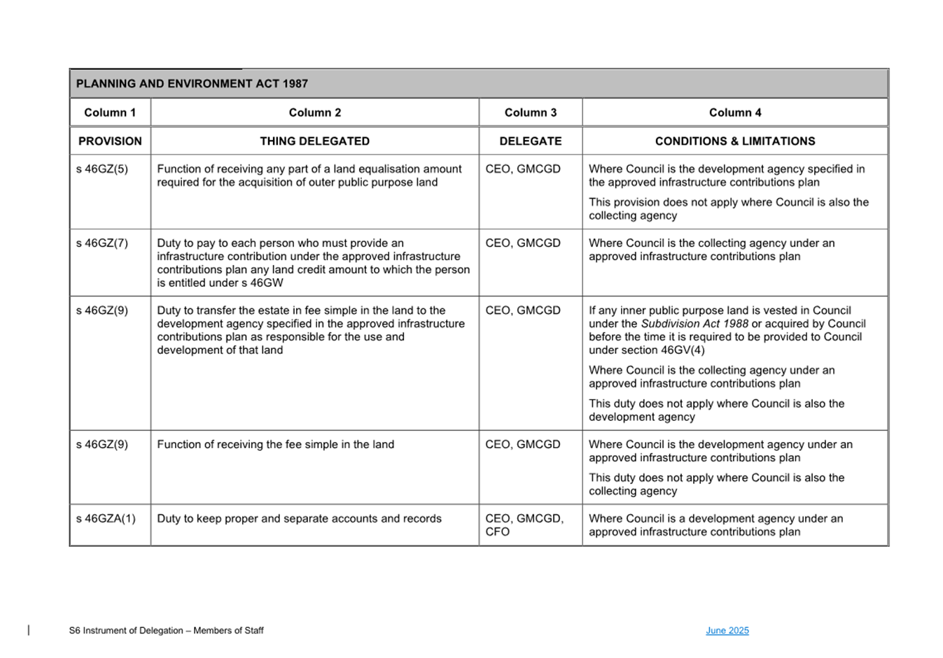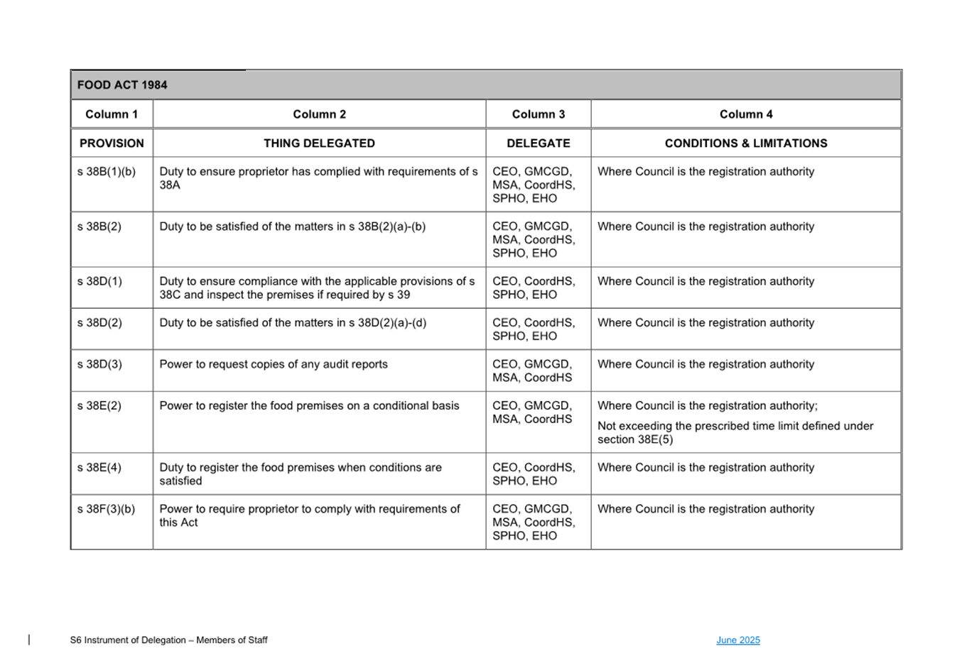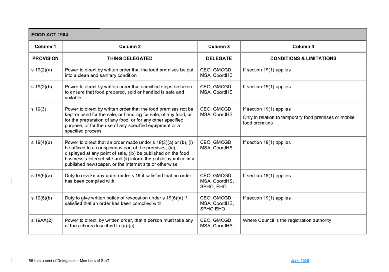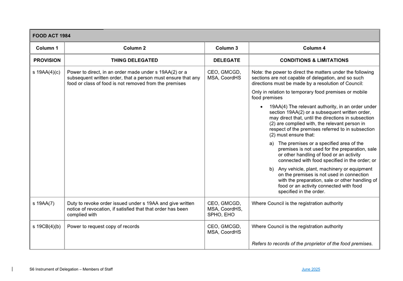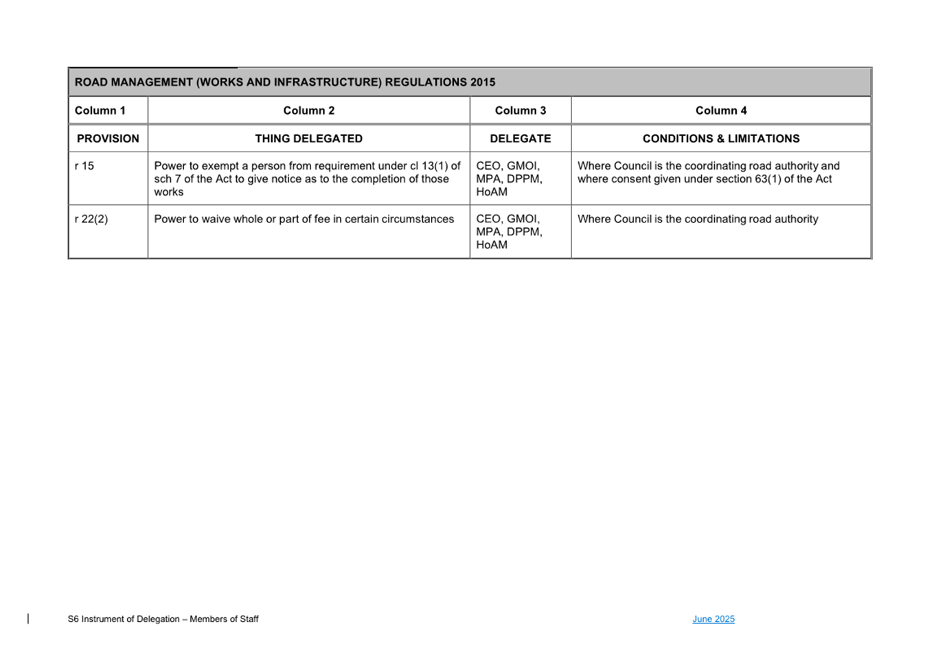 1. S6 Instrument of Delegation Council to Staff - June