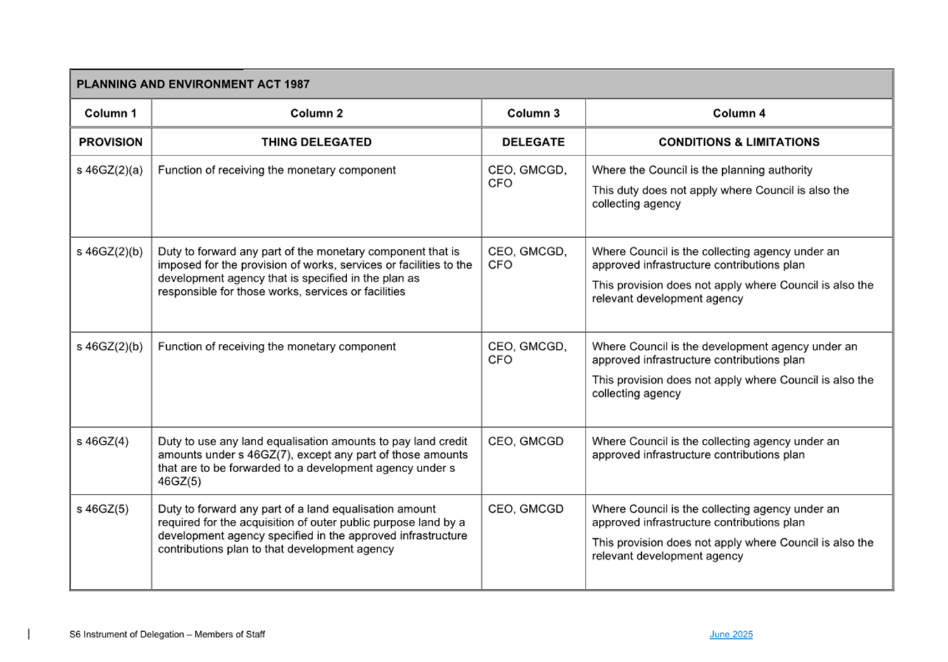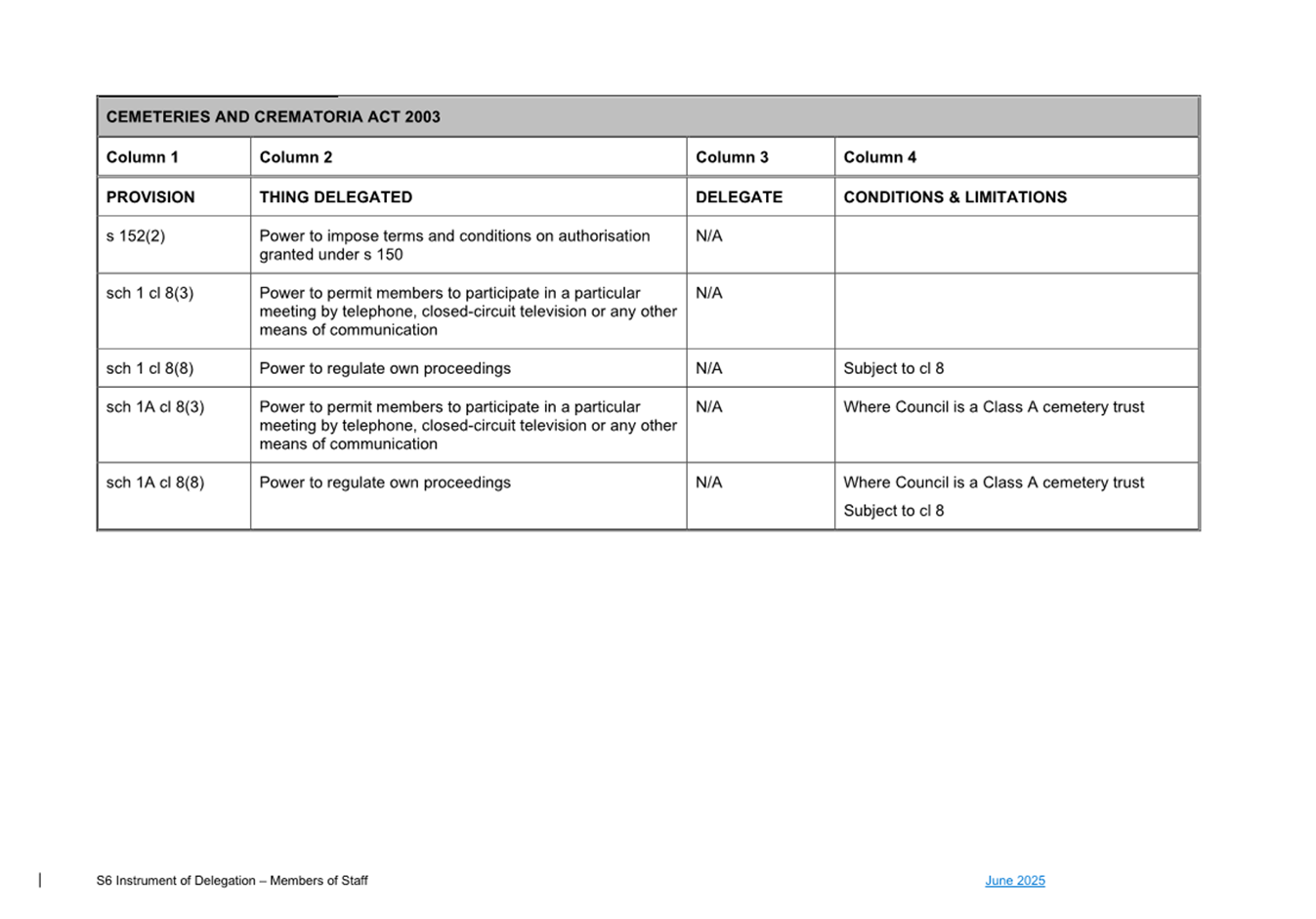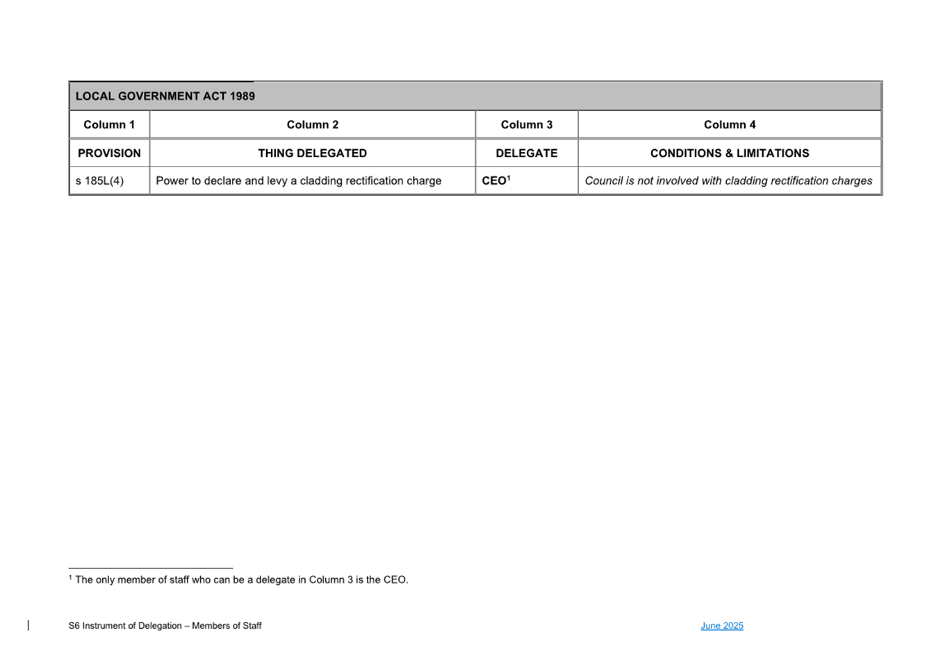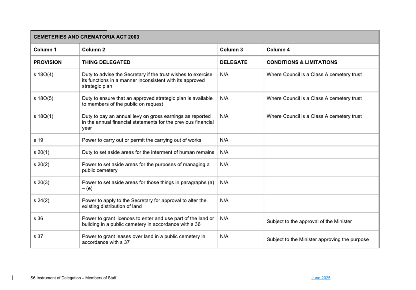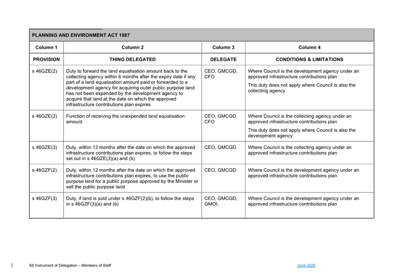 1. S6 Instrument of Delegation Council to Staff - June