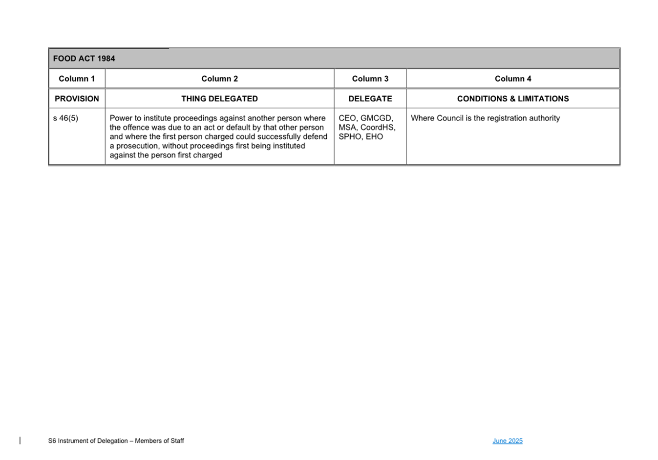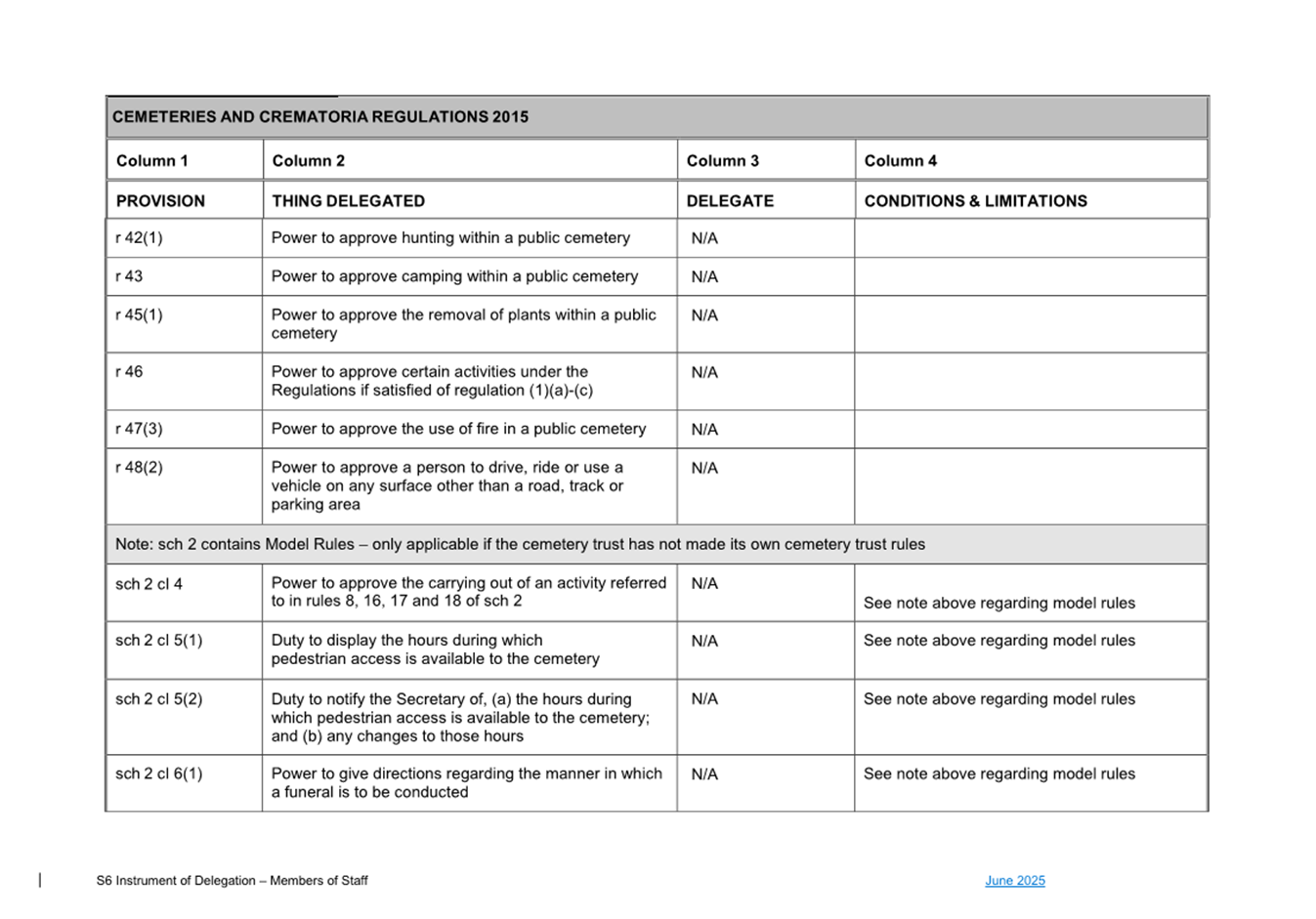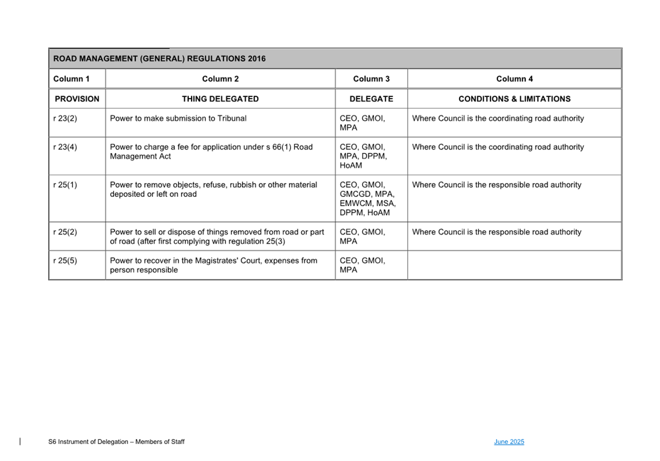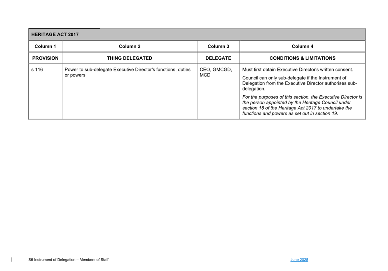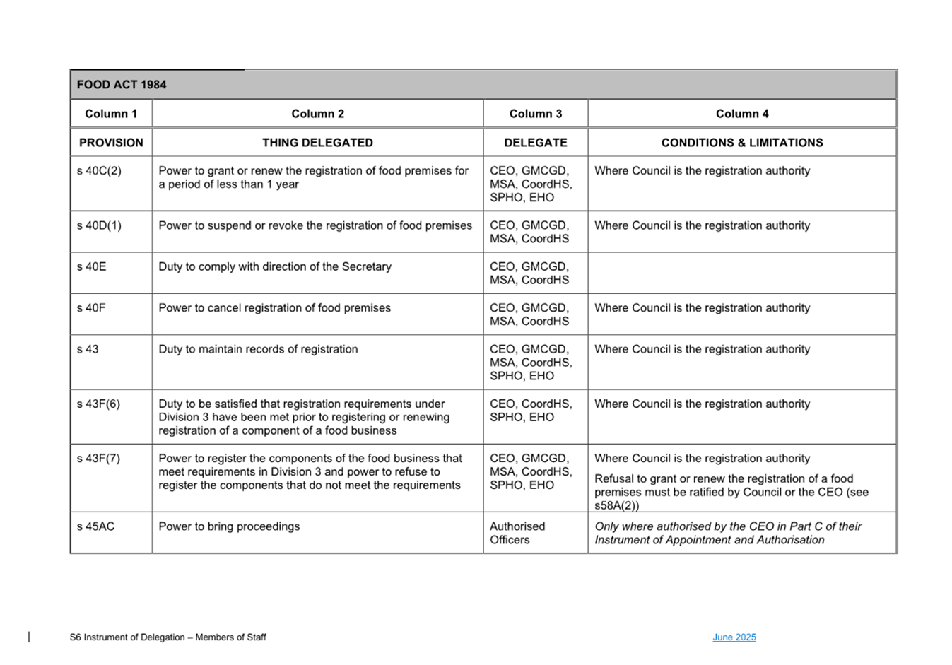 1. S6 Instrument of Delegation Council to Staff - June