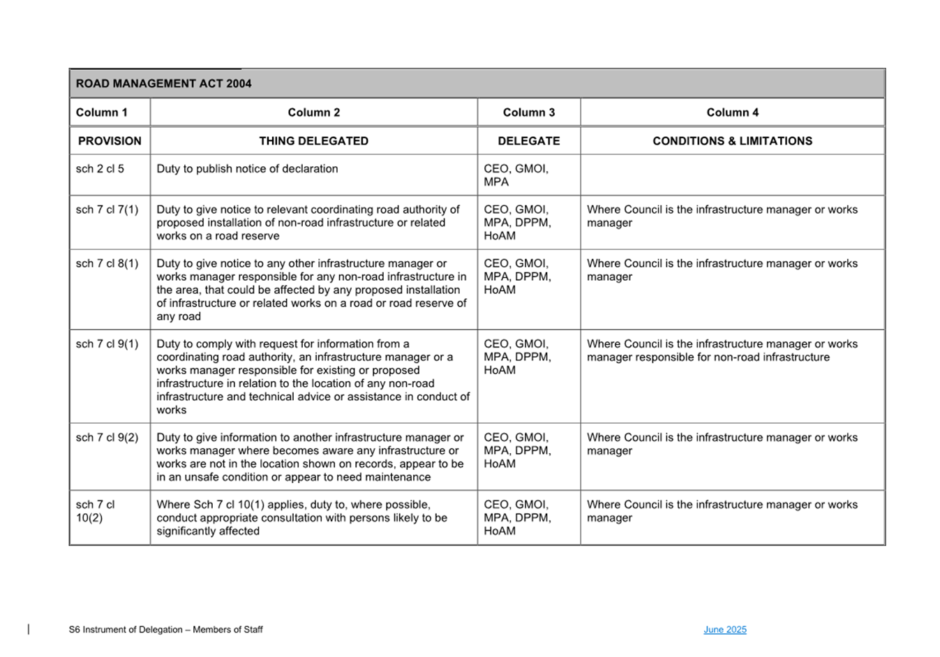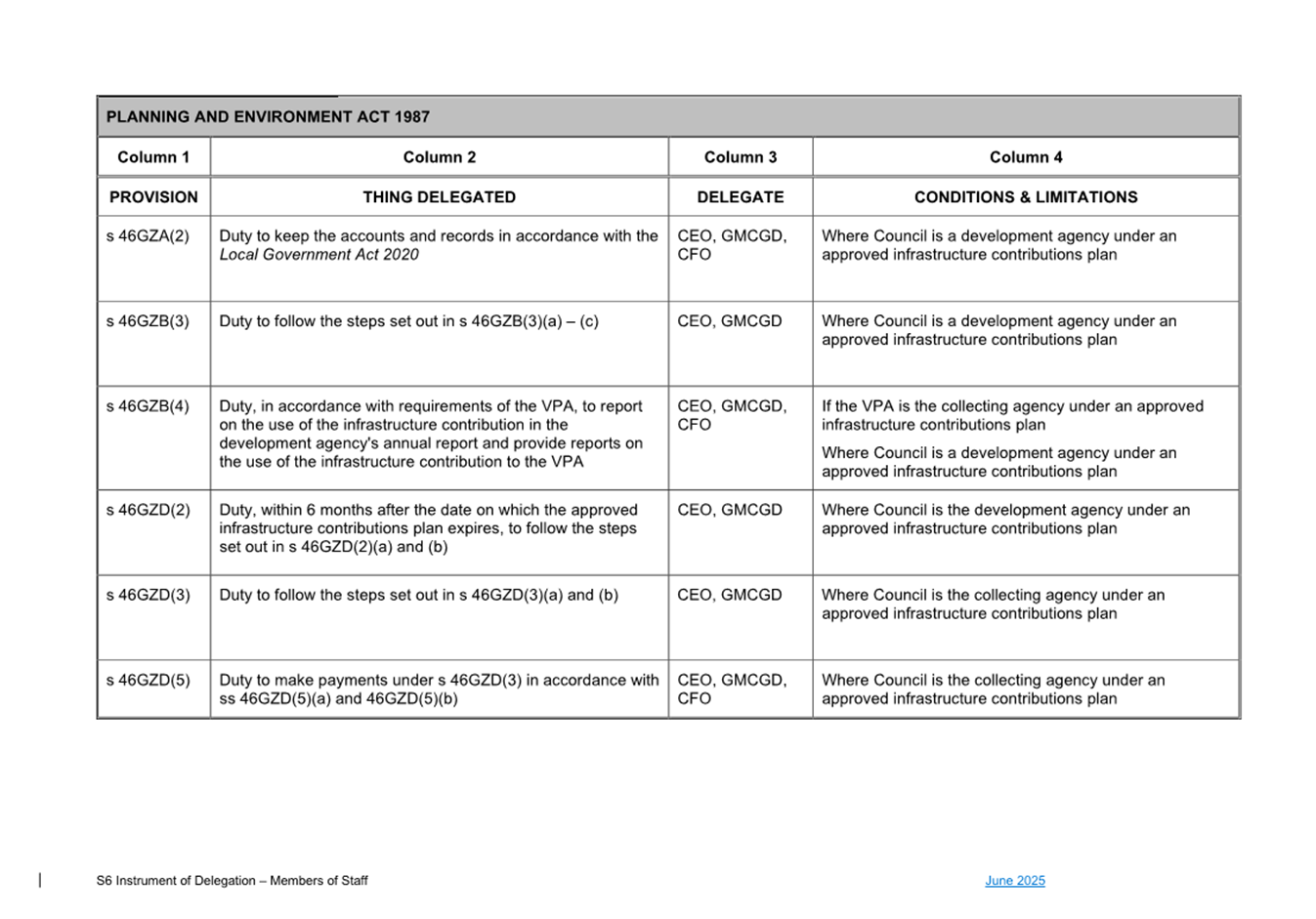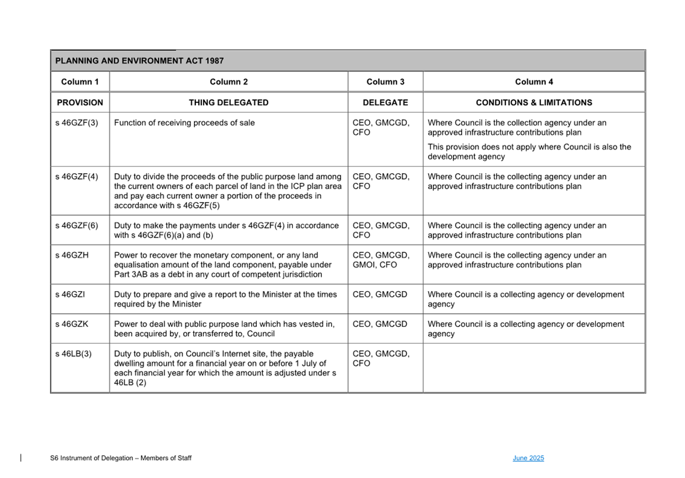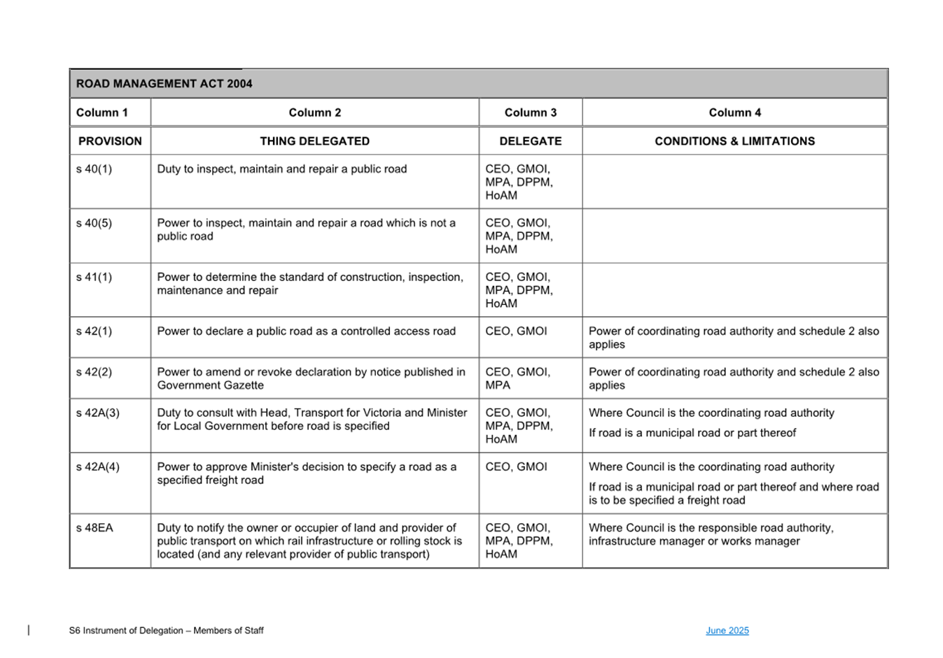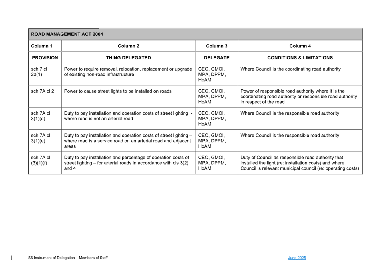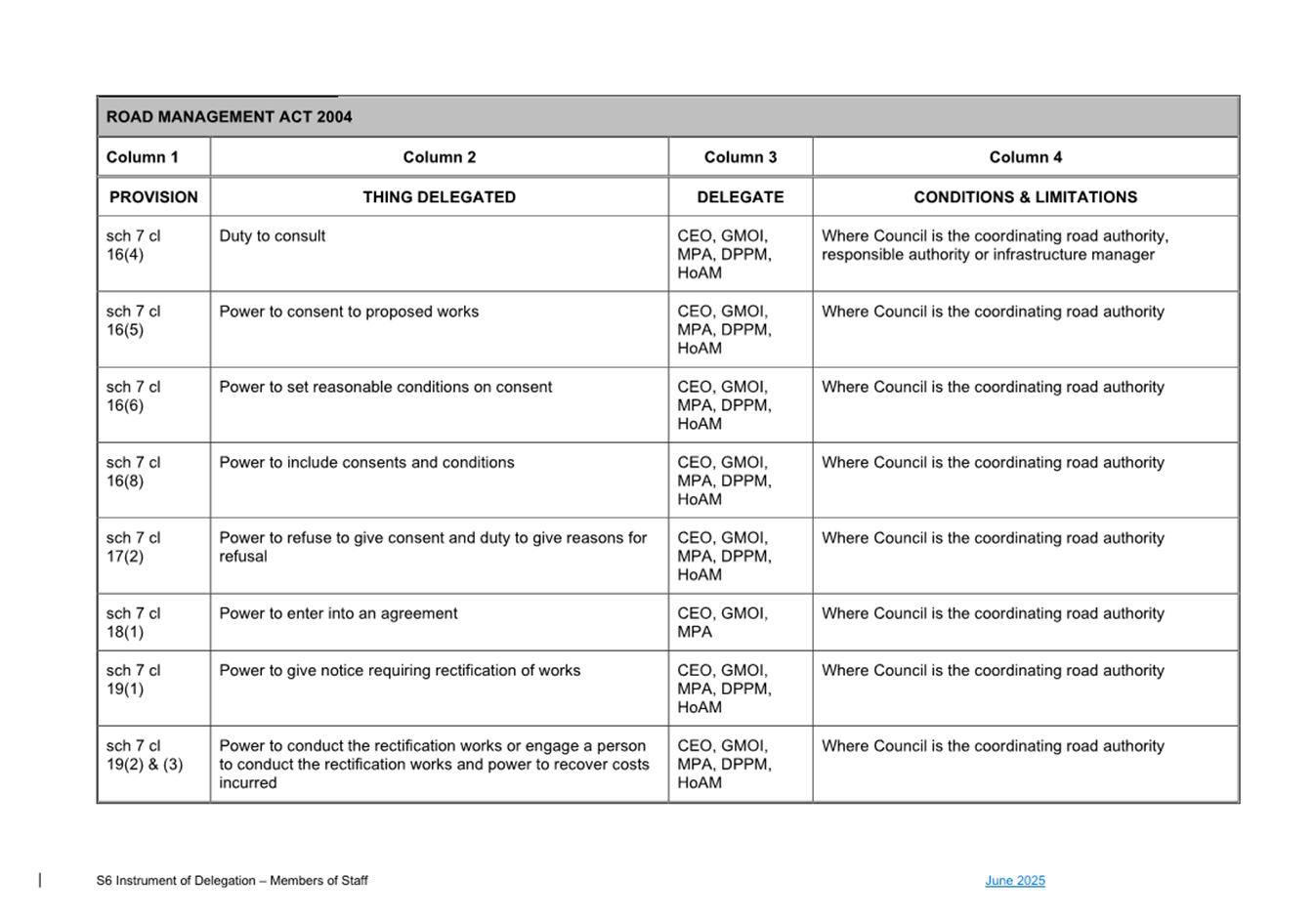 1. S6 Instrument of Delegation Council to Staff - June