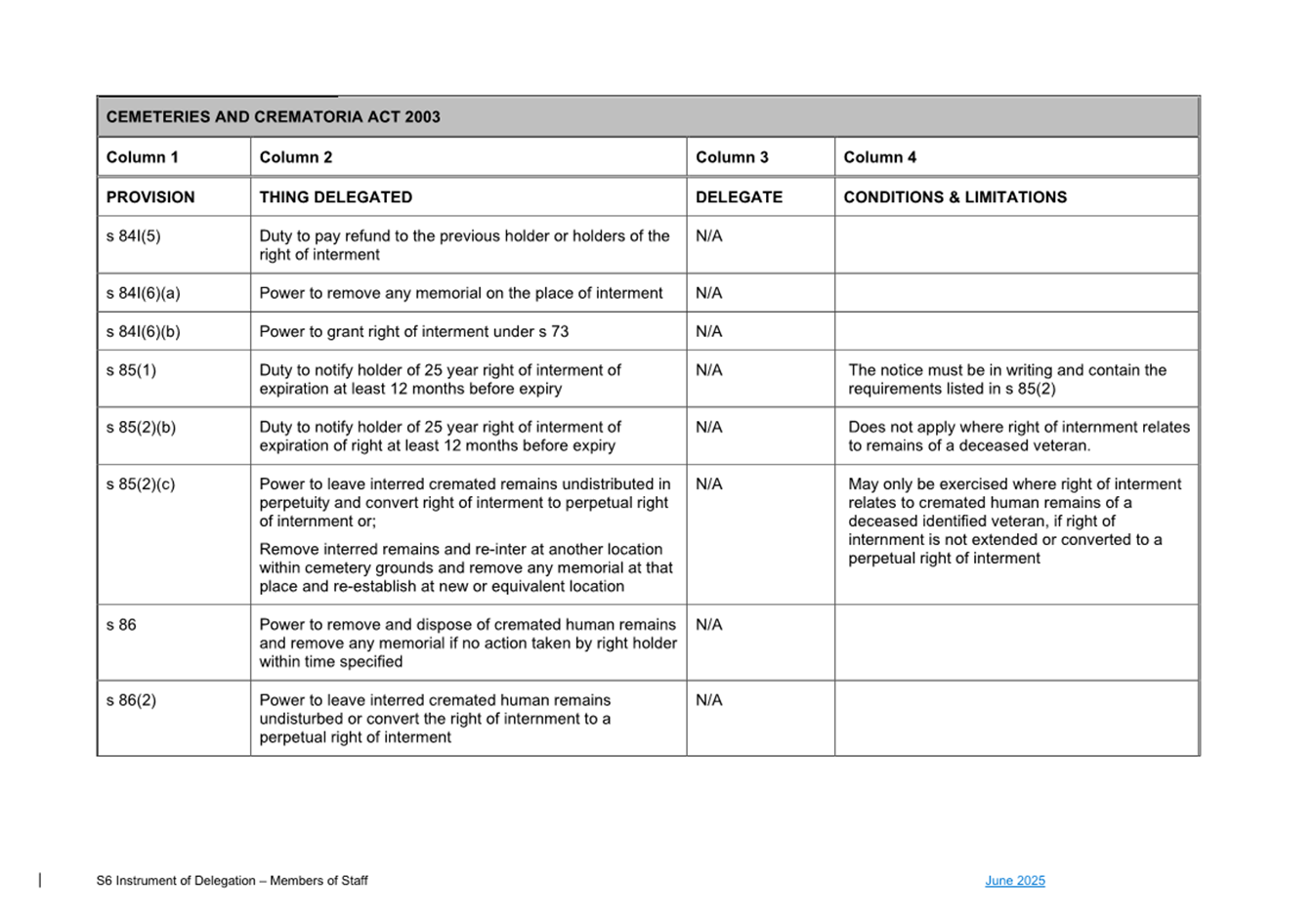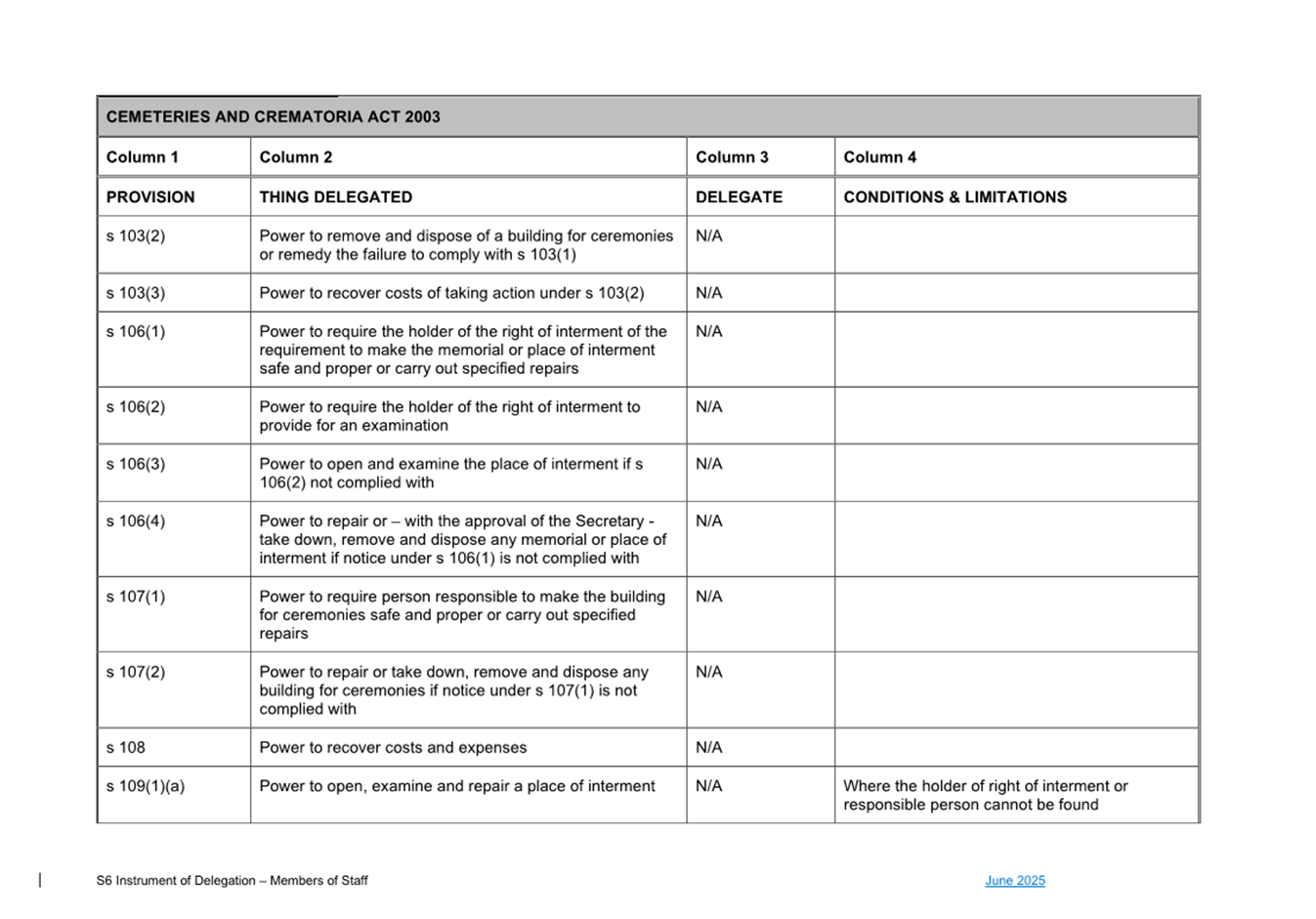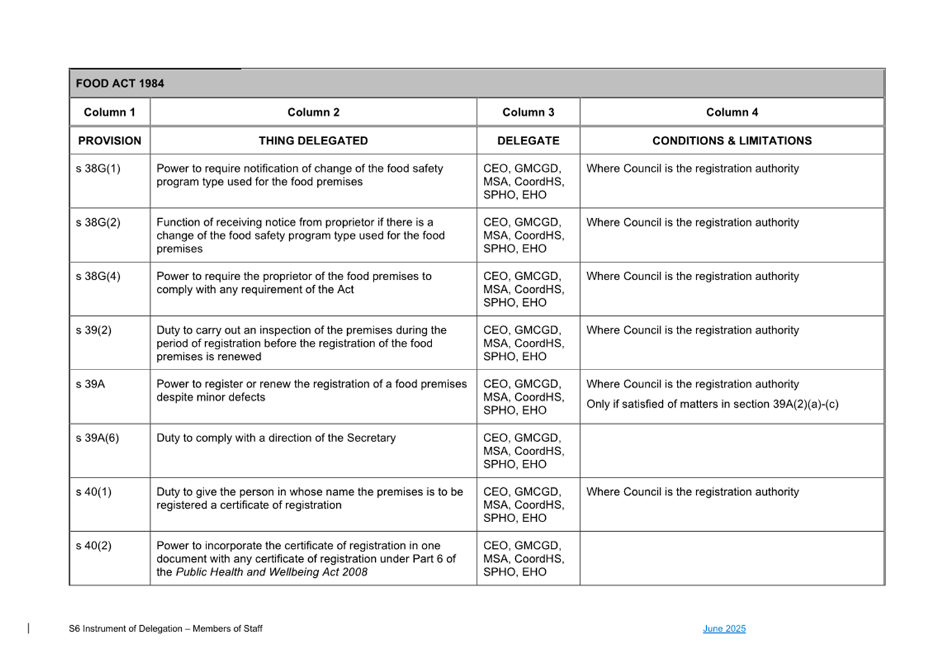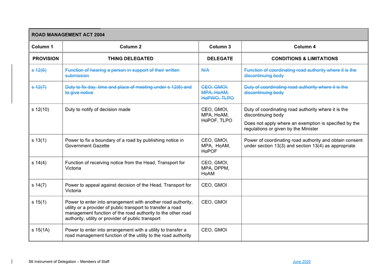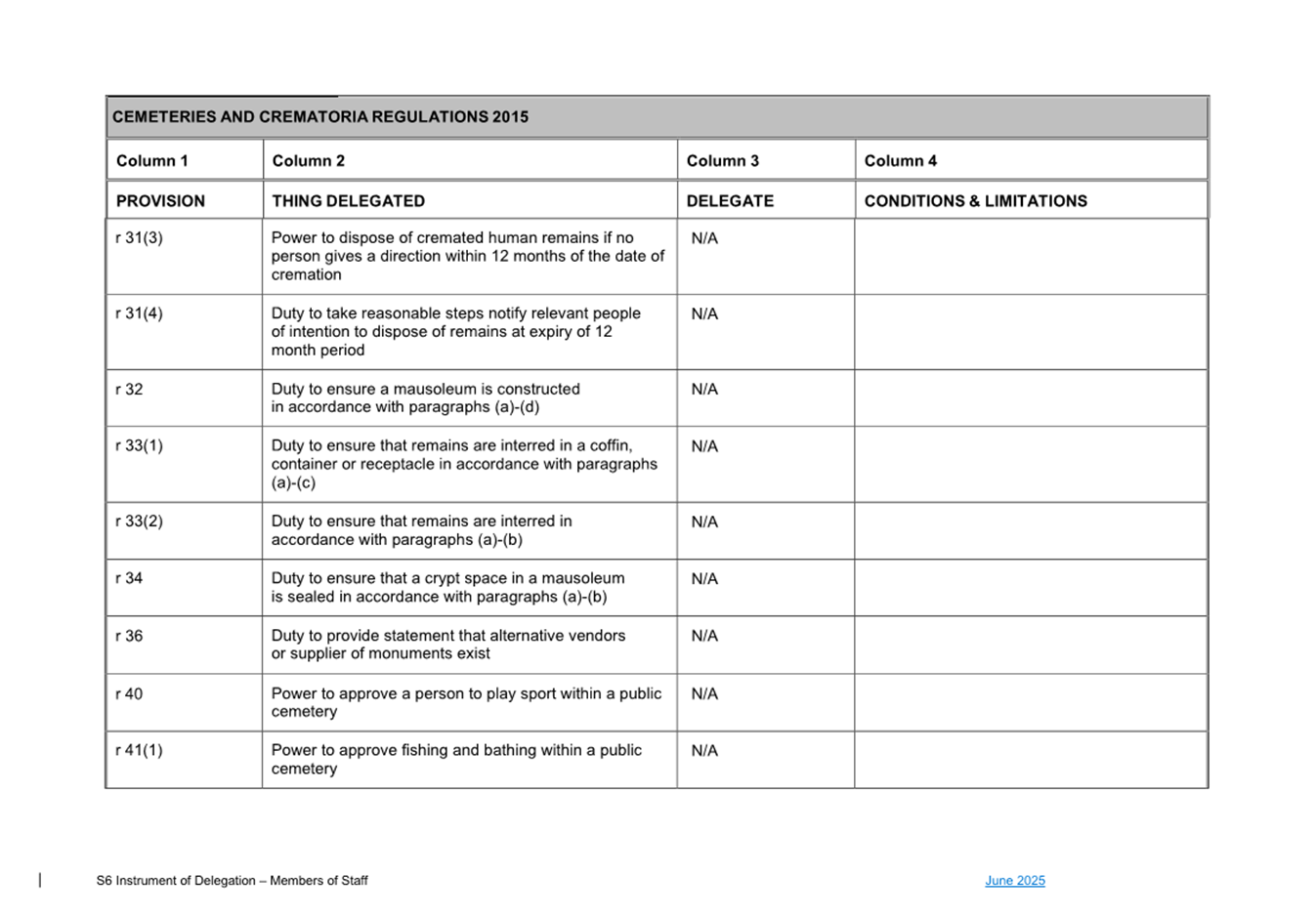 1. S6 Instrument of Delegation Council to Staff - June