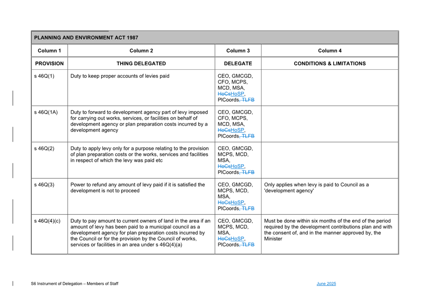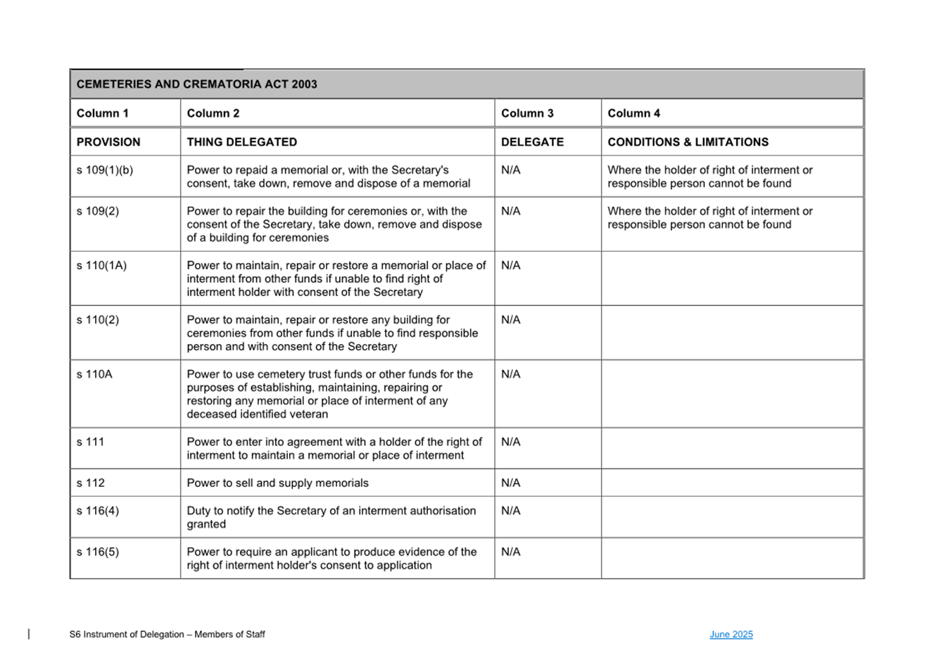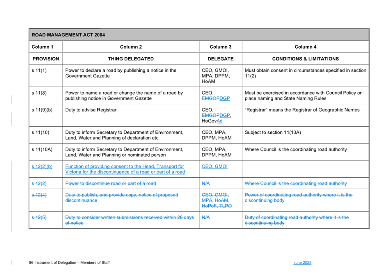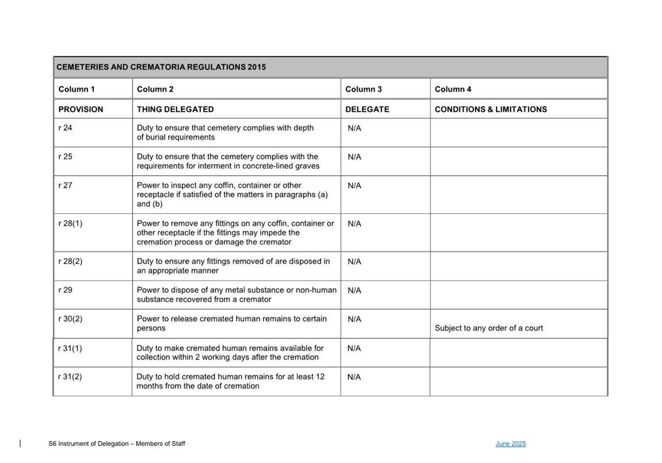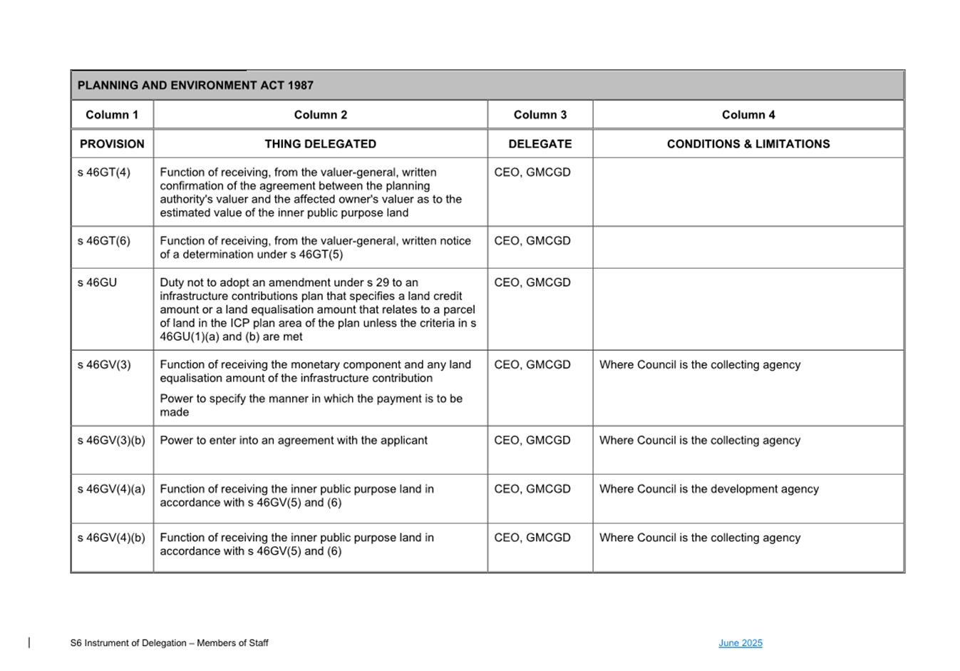 1. S6 Instrument of Delegation Council to Staff - June