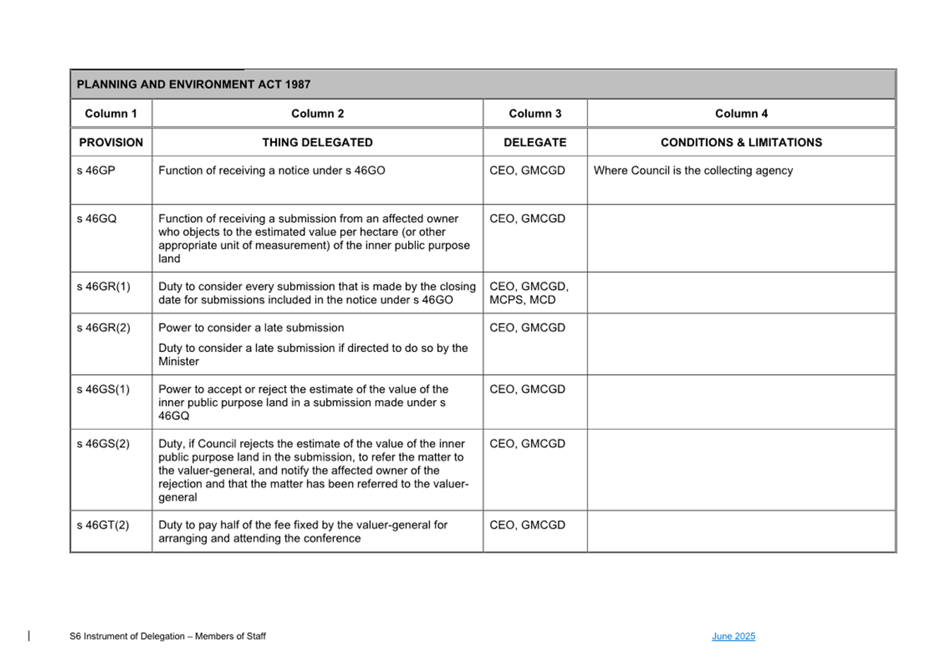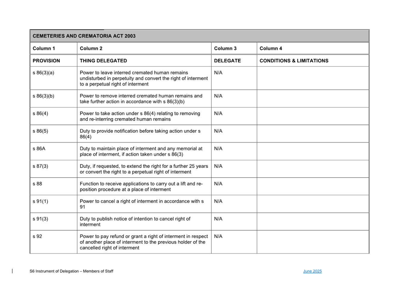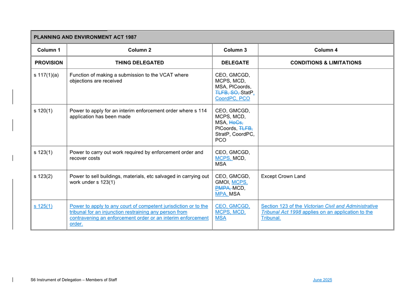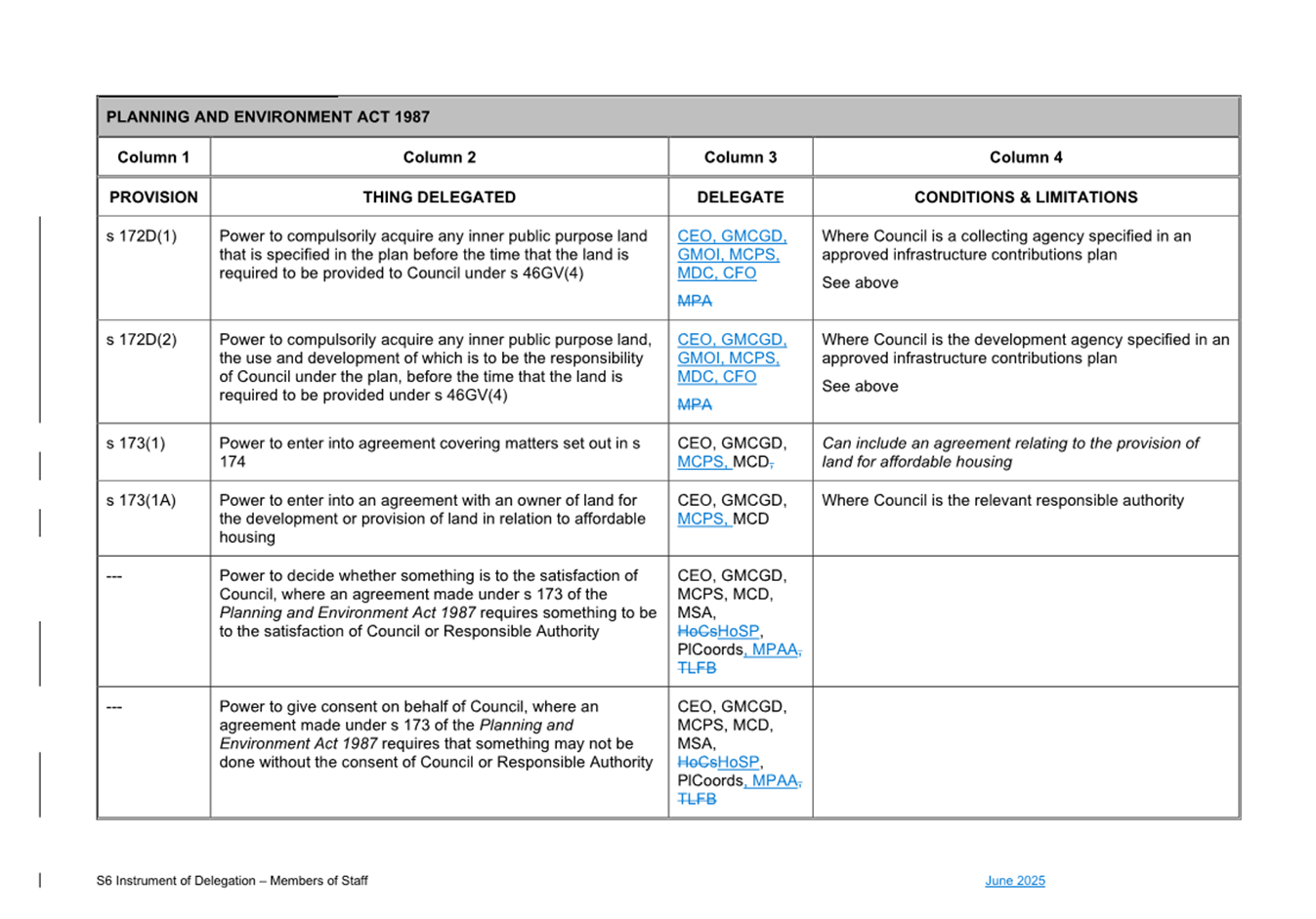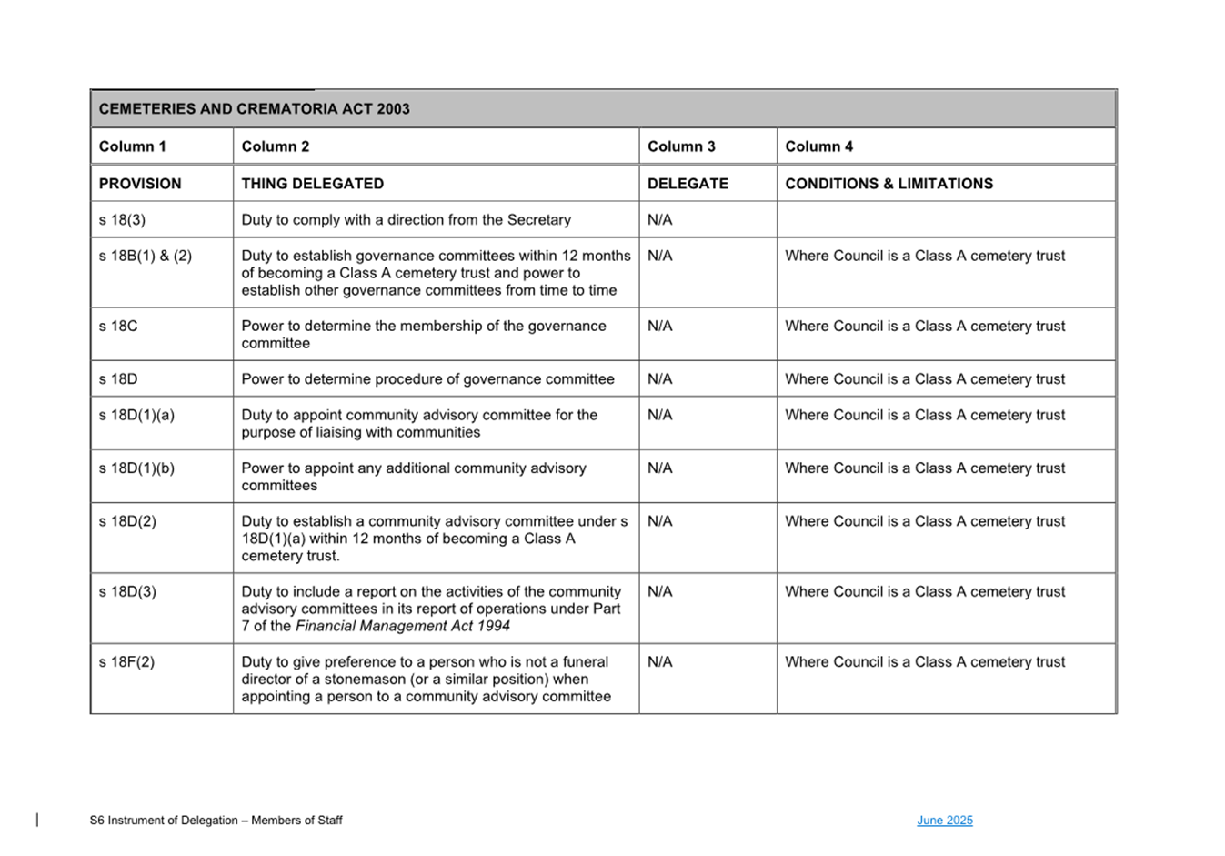 1. S6 Instrument of Delegation Council to Staff - June