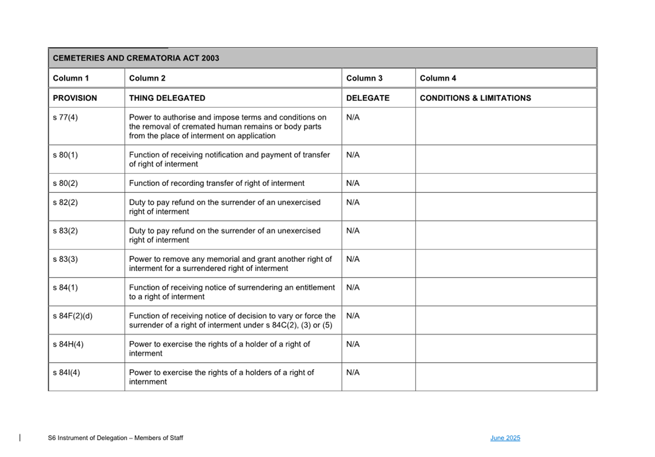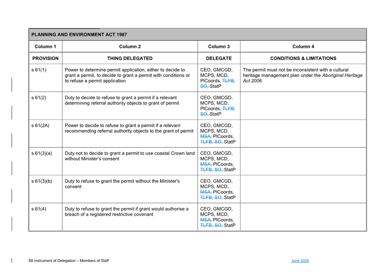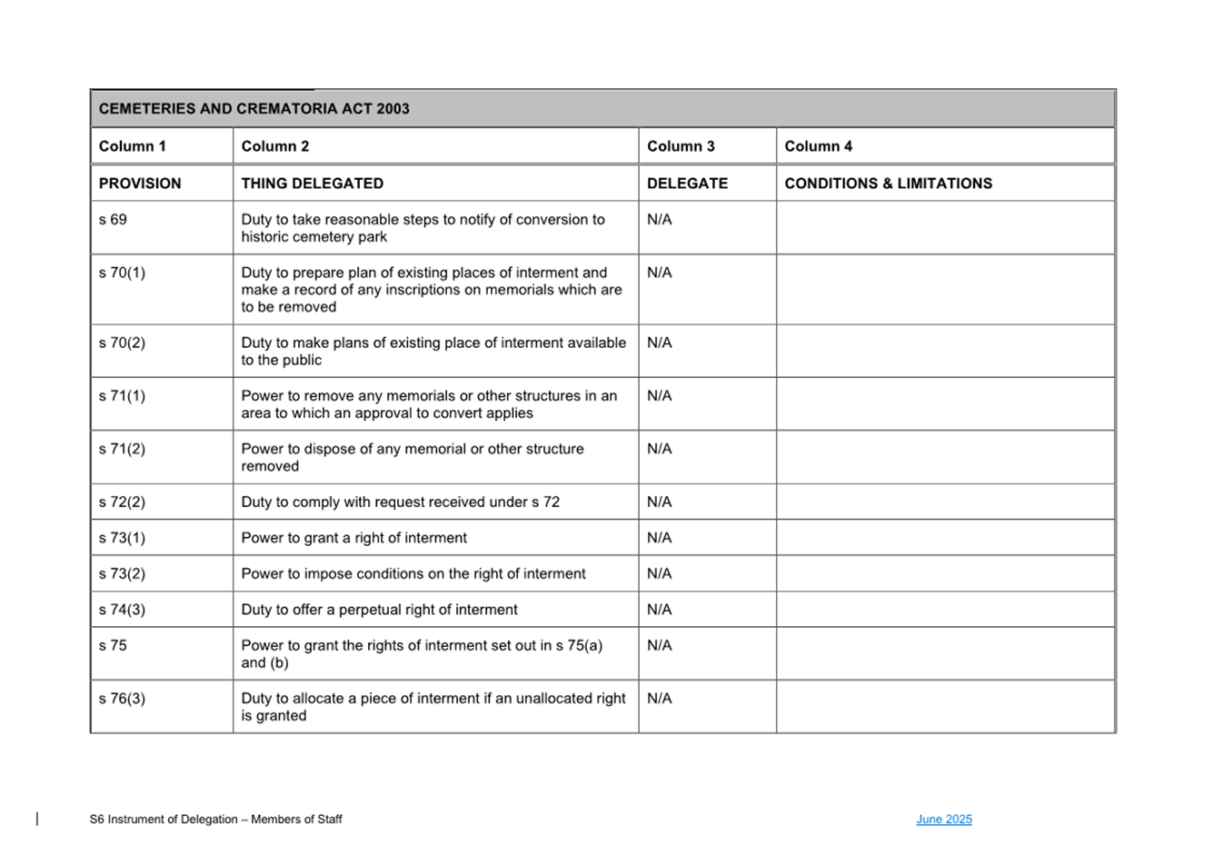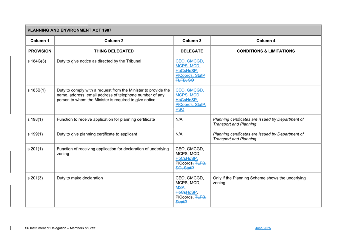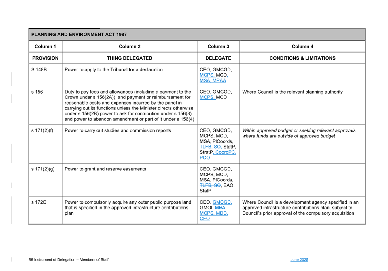 1. S6 Instrument of Delegation Council to Staff - June