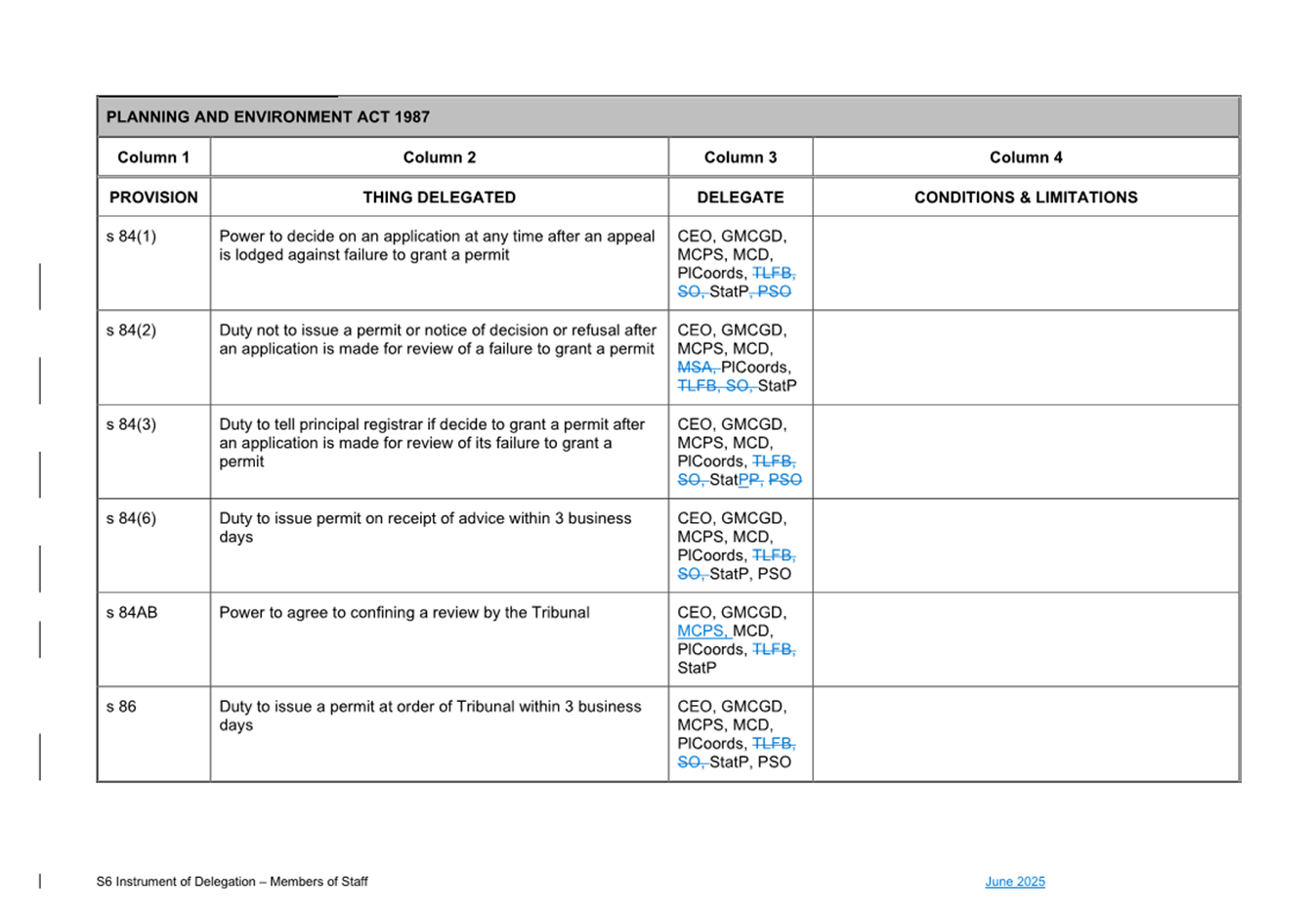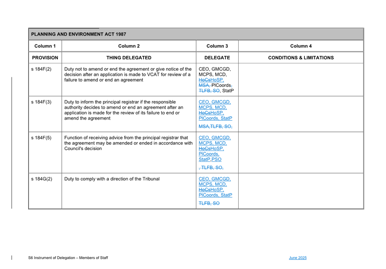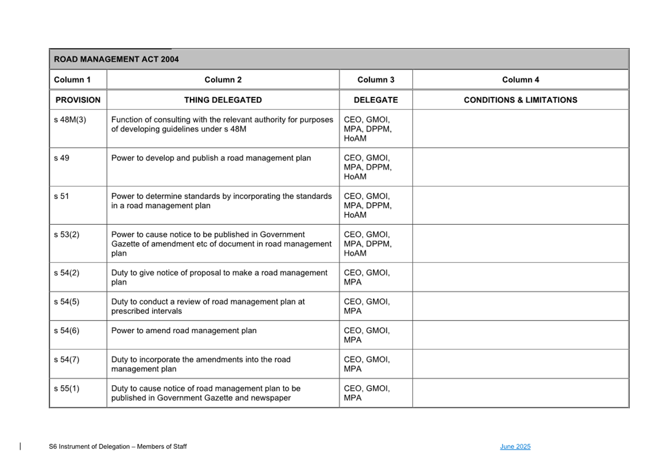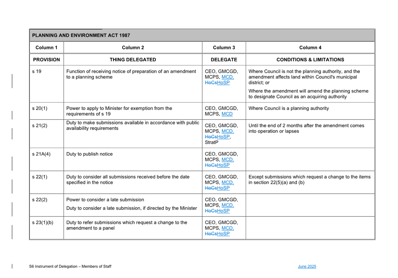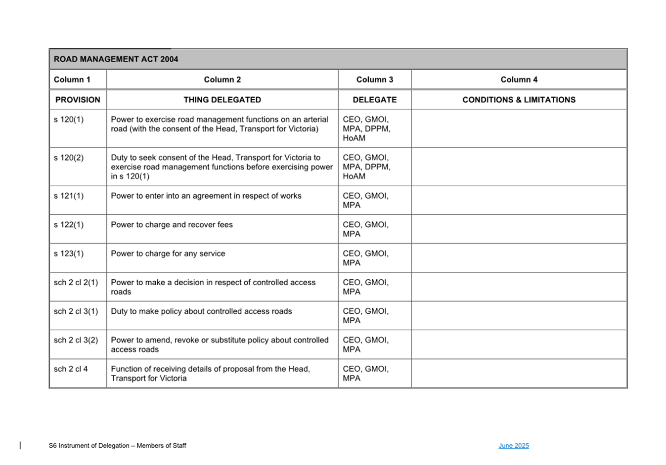 1. S6 Instrument of Delegation Council to Staff - June